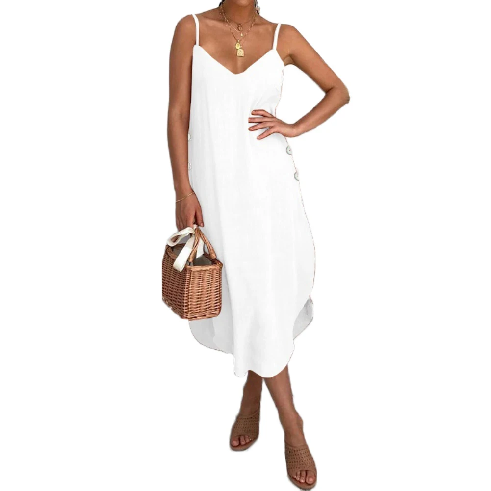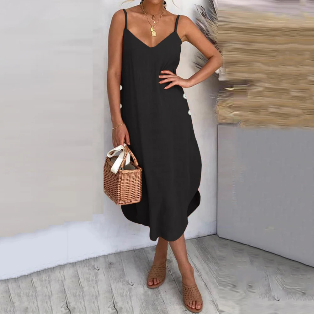 Женское сексуальное платье миди с регулируемыми бретелями и асимметричным подолом