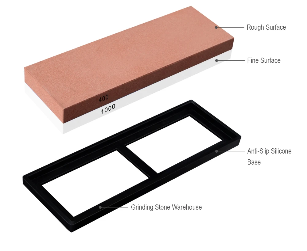 High QUALITY & EASY TO USE Our Double Side Grit Sharpening Stone made from professional grade white corundum. Our sharpening Water stone kit is extremely USER-FRIENDLY & easy to assemble. Knife sharpener stone uses WATER for sharpening, so it is no need of expensive sharpening/honing oils and no mess while sharpening & it can be easily cleaned using water. MULTIPURPOSE USE This whetstone sharpener can sharp ANY BLADE out there, be it kitchen knives, Hunting Knife, Pocket Knife, Scissor, Chisel, Blade, Razor & it can even sharp a hatchets! SAFE TO USE The non-slip silicone base holds the sharpening stone securely in a place, so you never have to worry about the whetstone slipping off the counter. if you choose whetstone set, your single whetstone with a Silicone base for holding the stone inside Non-slip Bamboo base, this setup will further ensure the stone is FIXED IN ONE PLACE while sharpening it.