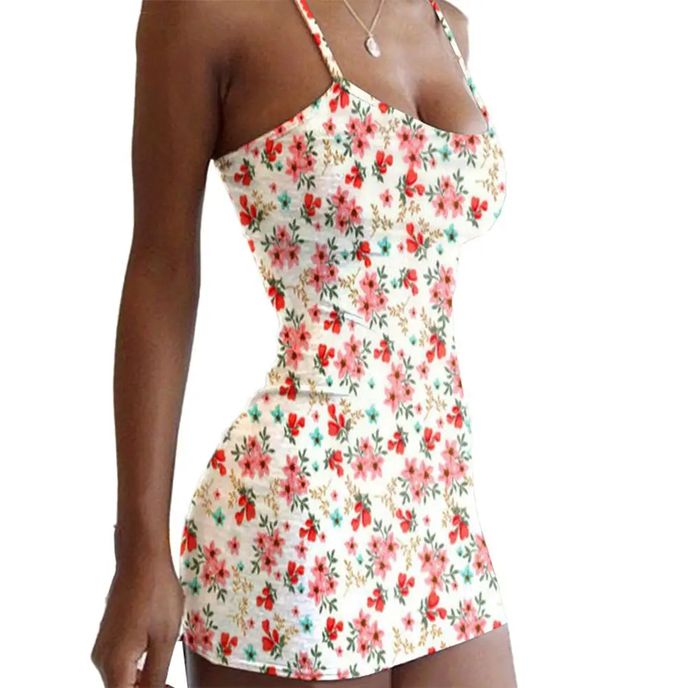 Женское сексуальное летнее платье на бретельках с цветочным принтом, вечерние мини-платья на бретельках