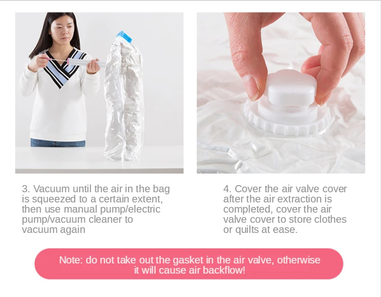 4. Накройте крышку воздушного клапана после того, как воздухоотвод будет завершен, накройте крышку воздушного клапана, чтобы легко хранить одежду или одеяла.