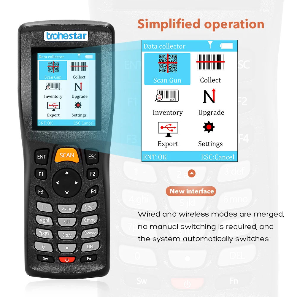 Автономный режим хранения:2,4G Беспроводная и проводная usb, внутренний в автономном режиме сохранения поддерживает до 100000 штрих-кодов в автономный режим хранения.