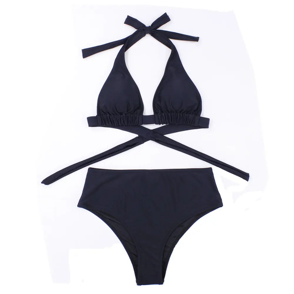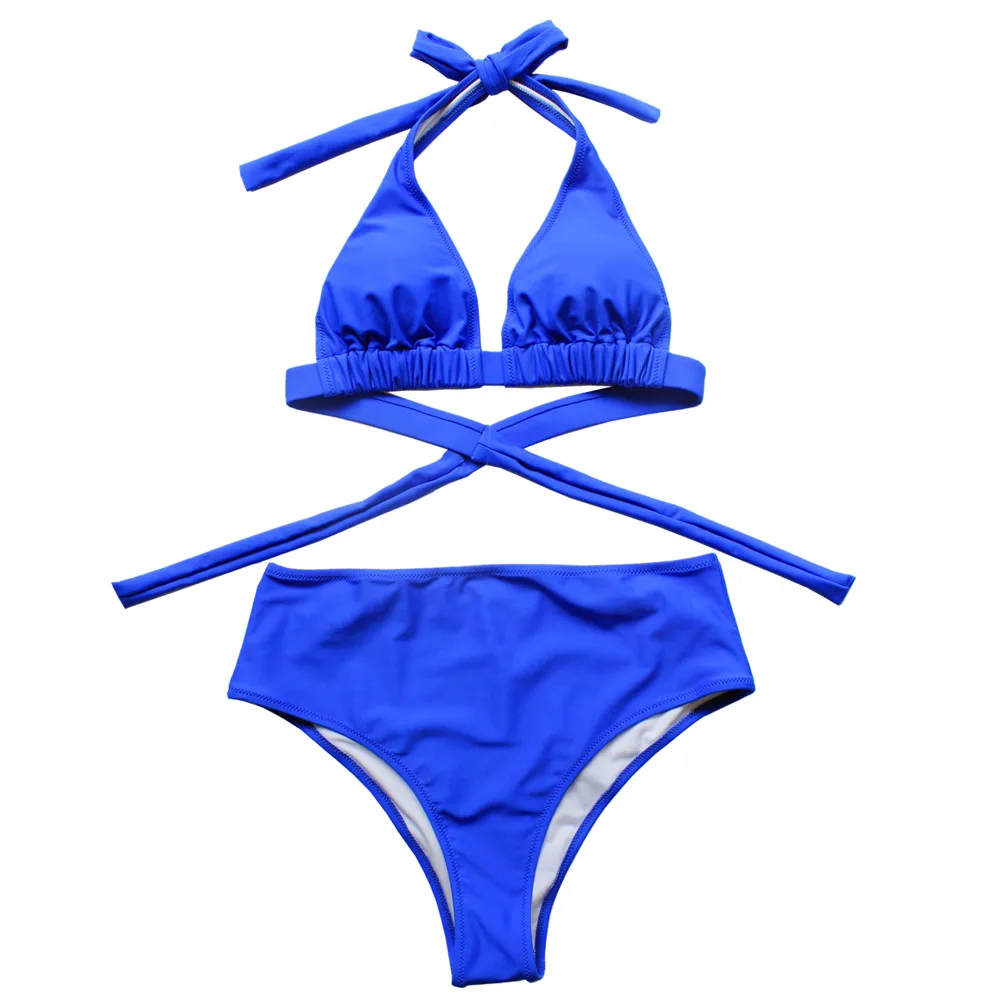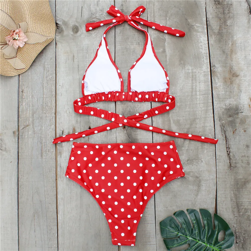 Сексуальный ретро купальник-бикини в горошек с лямкой через шею и высокой талией 2021, женский купальник, Женский бандажный купальник с пуш-ап