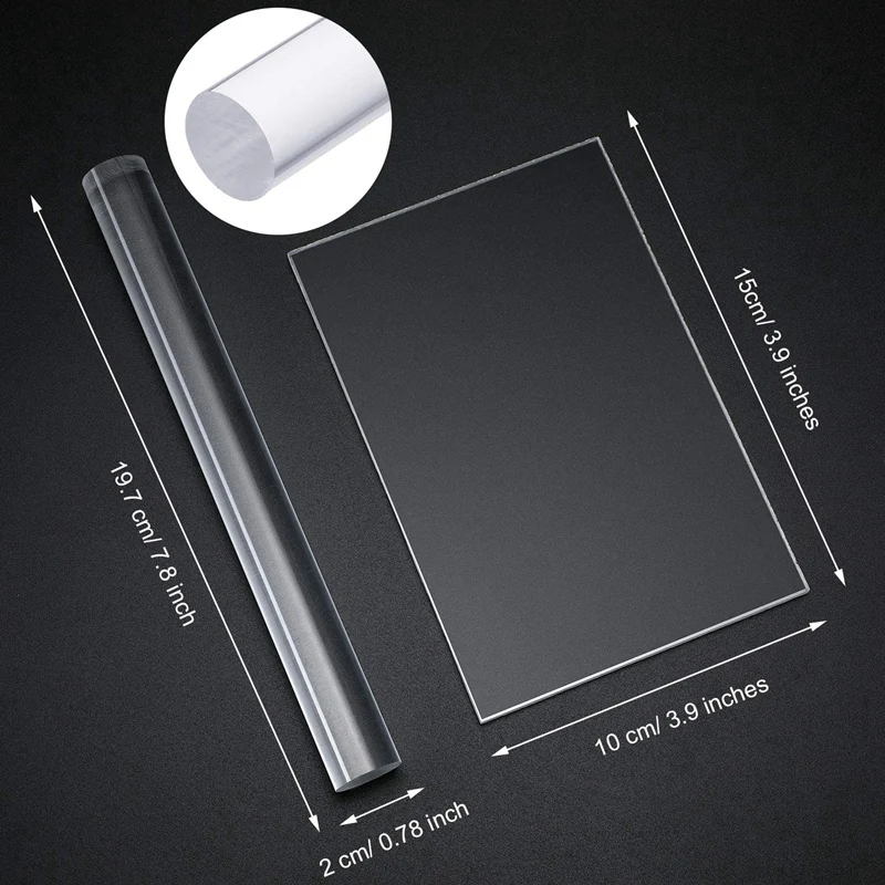 Акриловый ролик для глины: ролик для глины твердый в форме цилиндра, со стеклянной гладкой, нереактивной поверхностью, антипригарным и приятным весом для прокатки; Кроме того, прозрачная конструкция цилиндра не препятствует Вашему взгляду, когда вы закатываете глину в ровный лист