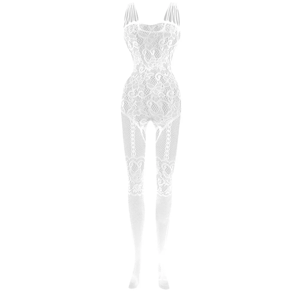 Женское Эротическое Прозрачное Кружевное боди с открытой промежностью, открытые чулки, одежда для сна