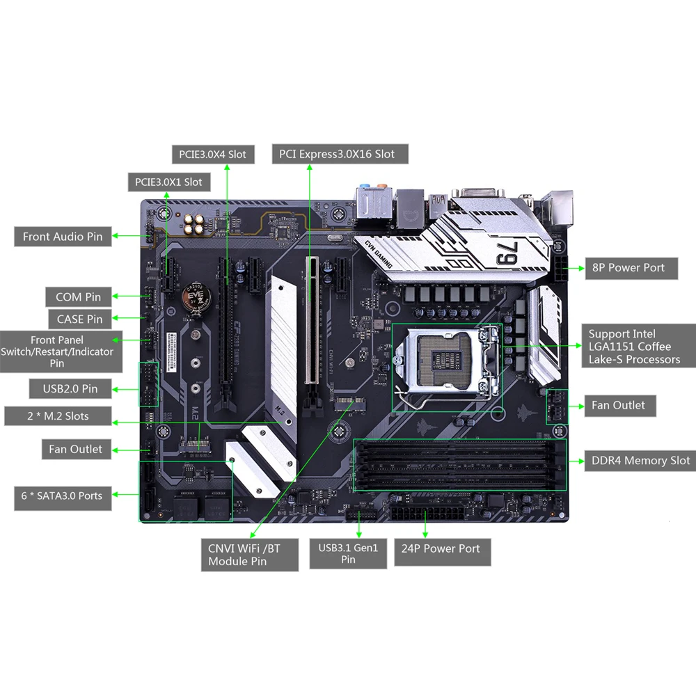 Цветная игровая материнская плата CVN Z390, игровая материнская плата V20, Поддержка процессоров Intel LGA1151 Coffee Lake-S, двухканальный DDR4
