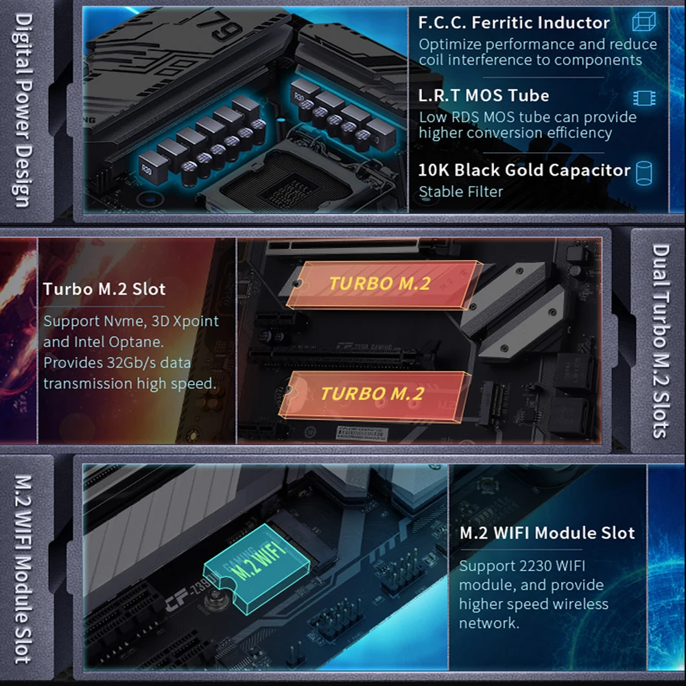 M.2 разъем модуля WiFi поддерживает 2230 WiFi модуль, обеспечивает более быструю и стабильную беспроводную сеть.