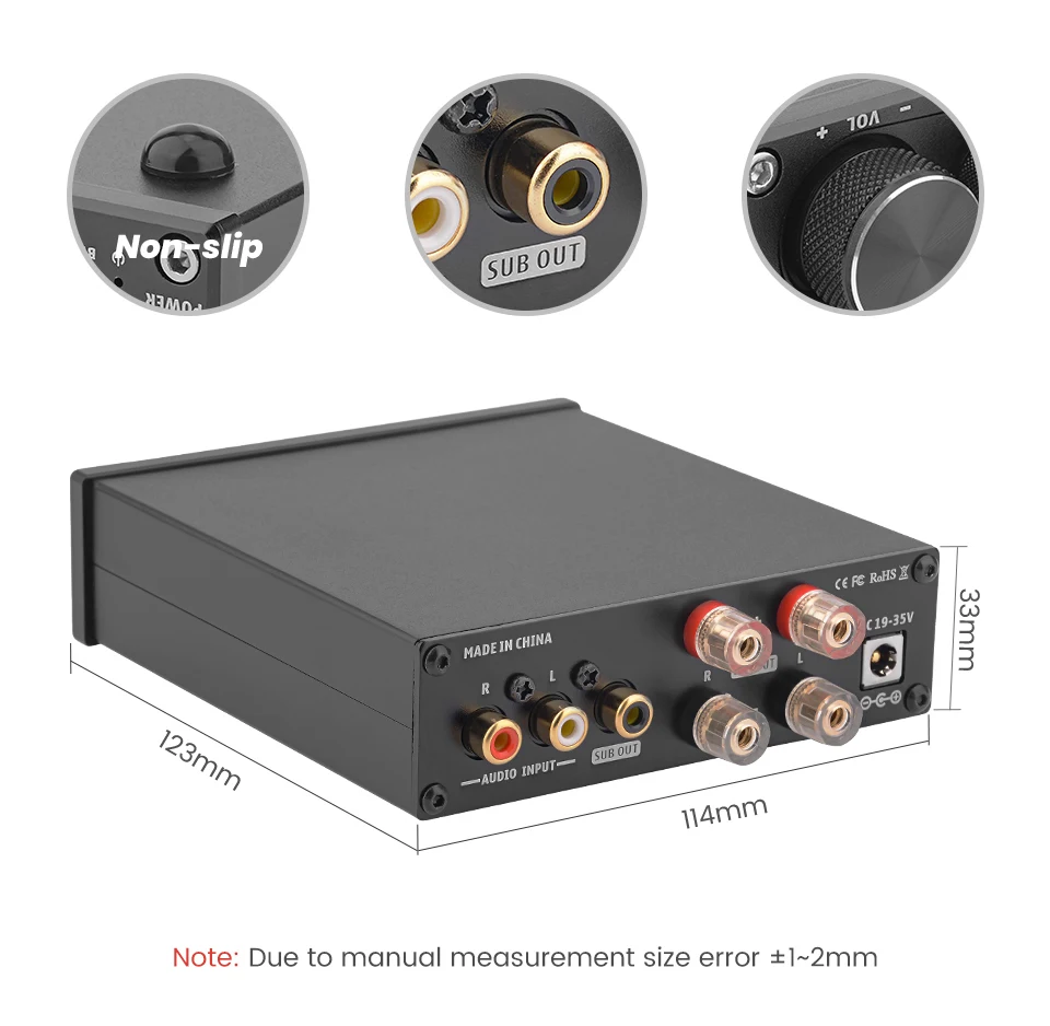 Название продукта: 160W * 2 Bluetooth 5,0 цифровой усилитель мощности Чип усилителя: TDA7498E Аудиовход: Bluetooth/RCA/U-диск Аудиовыход: разъемы для динамиков banana/низкочастотный сигнал (подключение активного сабвуфера) Максимальная выходная мощность: 160 Вт + 160 Вт (нагрузка 4 Ом) Источник питания по умолчанию: 32 В постоянного тока/5 А Поддержка форматов: MP3, WMA, APE, FLAC, WAV Емкость U-диска: Макс. 32 г Версия Bluetooth: 5,0 Сопротивление динамика: 4-8Ω SNR:≥ 98 дБ THD:0.05% (1 кГц 1 Вт) Чувствительность на входе: 0,775 в Частотная характеристика 20 Гц-20 кГц (± 3 дБ) Канал: 2,0 (с низкочастотным выходом) Рабочее напряжение: 19-35 В постоянного тока Размеры (Д * Ш * В):118*117*35 мм/4,65*4,61*1,38 дюйма Вес нетто: 0,455 кг Вес посылка: 1,1 кг Особенности: 1. Продукт использует чип TDA7498E, максимальная выходная мощность может достигать 160 Вт + 160 Вт, оснащен высококачественным блоком питания 32 В/5 А, достаточным для привода пассивных динамиков мощностью более 300 Вт. Оба хорошо сочетаются с наружными/Книжными Полками/компьютером/рабочим столом/потолочными/напольными динамиками. 2. Помимо стерео RCA, также поддерживает Вход Bluetooth 5,0, совместим с телефонами, компьютерами, ТВ s, mp3-плеерами, ТВ, Echo Dot, CD-плеерами и т. д. Это также Цифровой музыкальный плеер с входом U-disk, поддерживающим форматы MP3, WAV, APE, FLAC и WMA lossless. 3. Низкочастотный выход специально разработан для подключения активных динамиков сабвуфера и басовые эффекты могут быть сильно усилены. Звук более деликатный с управлением высокими и басами, шокирующие слуховые эффекты заставляют чувствовать себя как в кино. 4. Разумная Точная компоновка и лаконичная проводка для обеспечения HiFi чистого и чистого звука, отсутствие слышимого шума даже при высокой выходной мощности. Уникальный дизайн Bluetooth без внешней антенны, очень практично и красиво. 5. Миниатюрный размер с изысканным внешним видом, чехол из алюминиевого сплава и позолоченные клеммы модные и долговечные, с входным переключателем и индикатором, очень подходят для использования в домашних и настольных аудиосистемах. Посылка входит: 1 * усилитель мощности Блок питания 1*32 в(Зависит от вашего выбора)Отличный костюм! Сидит как надо. Очень хорошая ткань, в которой тело хорошо дышит, а не преет. Качественно прошитый у меня... Читать отзыв полностью...