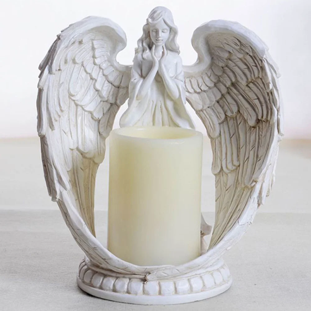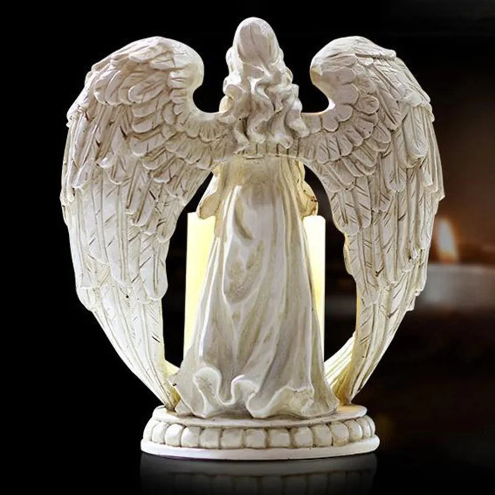Фигурки ангелов из смолы, поделки, электронный подсвечник, миниатюрный орнамент