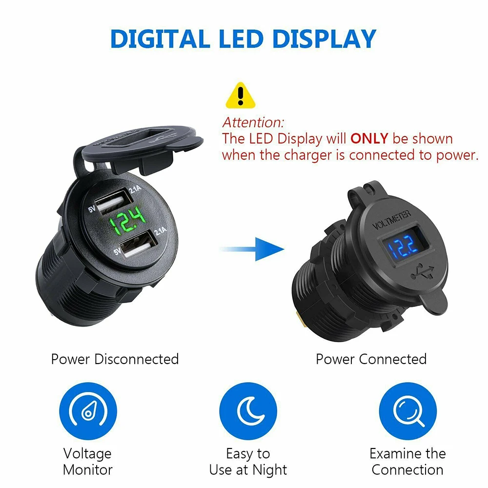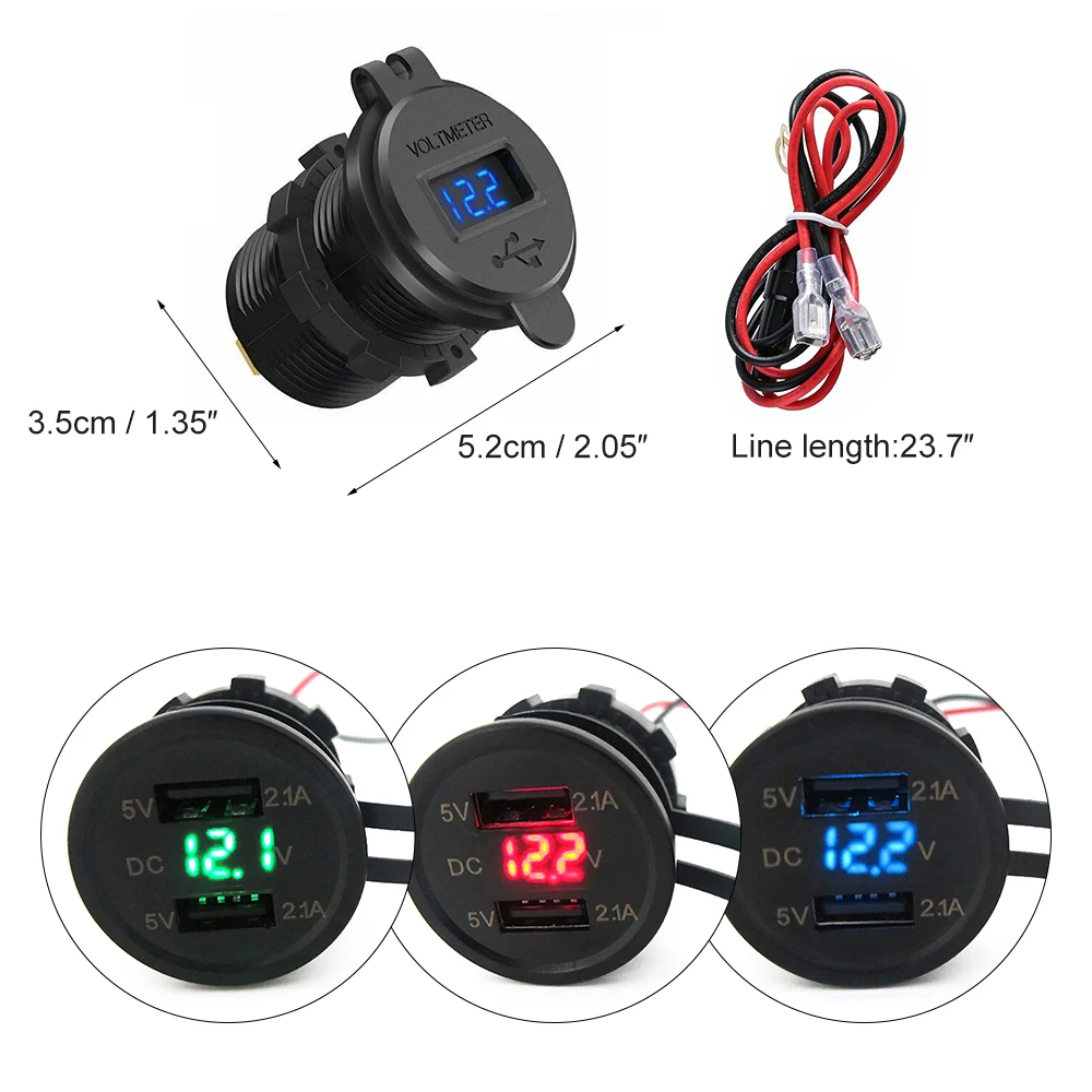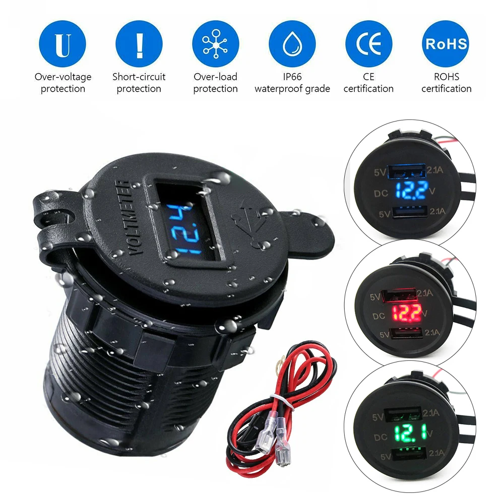 Автомобильное зарядное устройство для мотоцикла 2.1A универсальное двойное USB зарядное устройство для авто грузовика светодиодный светильник двойное USB зарядное устройство адаптер питания
