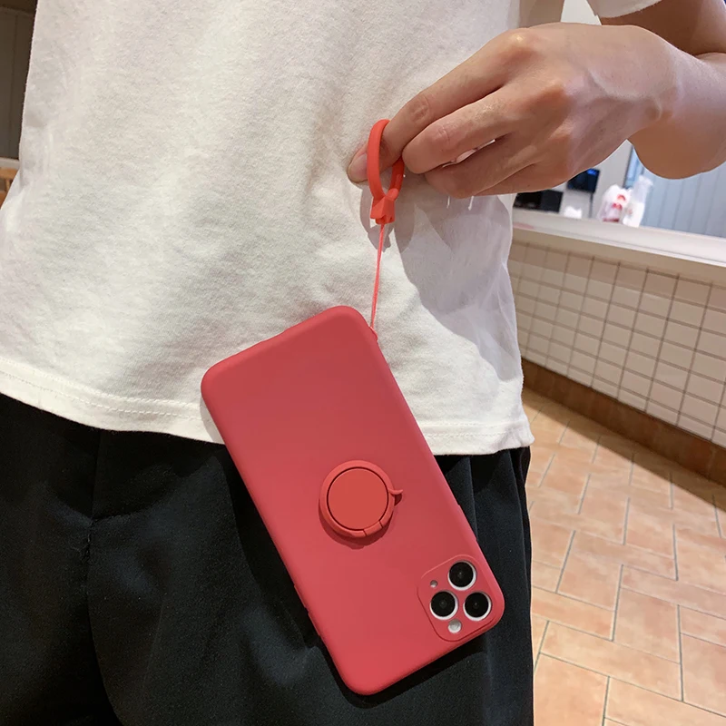 4IN1 высокое качество TPU Силикон + кольцо анти-потерянный канат + металлическая подставка + адсорбции кронштейн в автомобиле