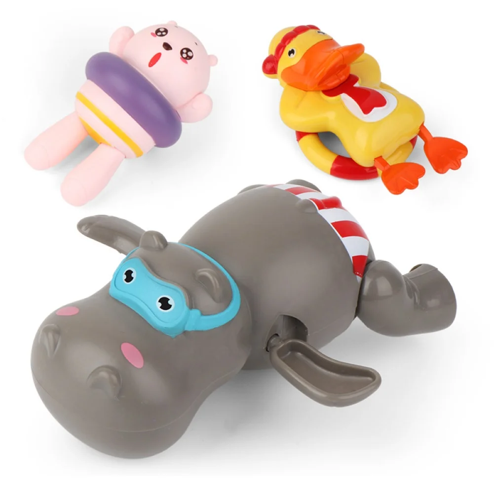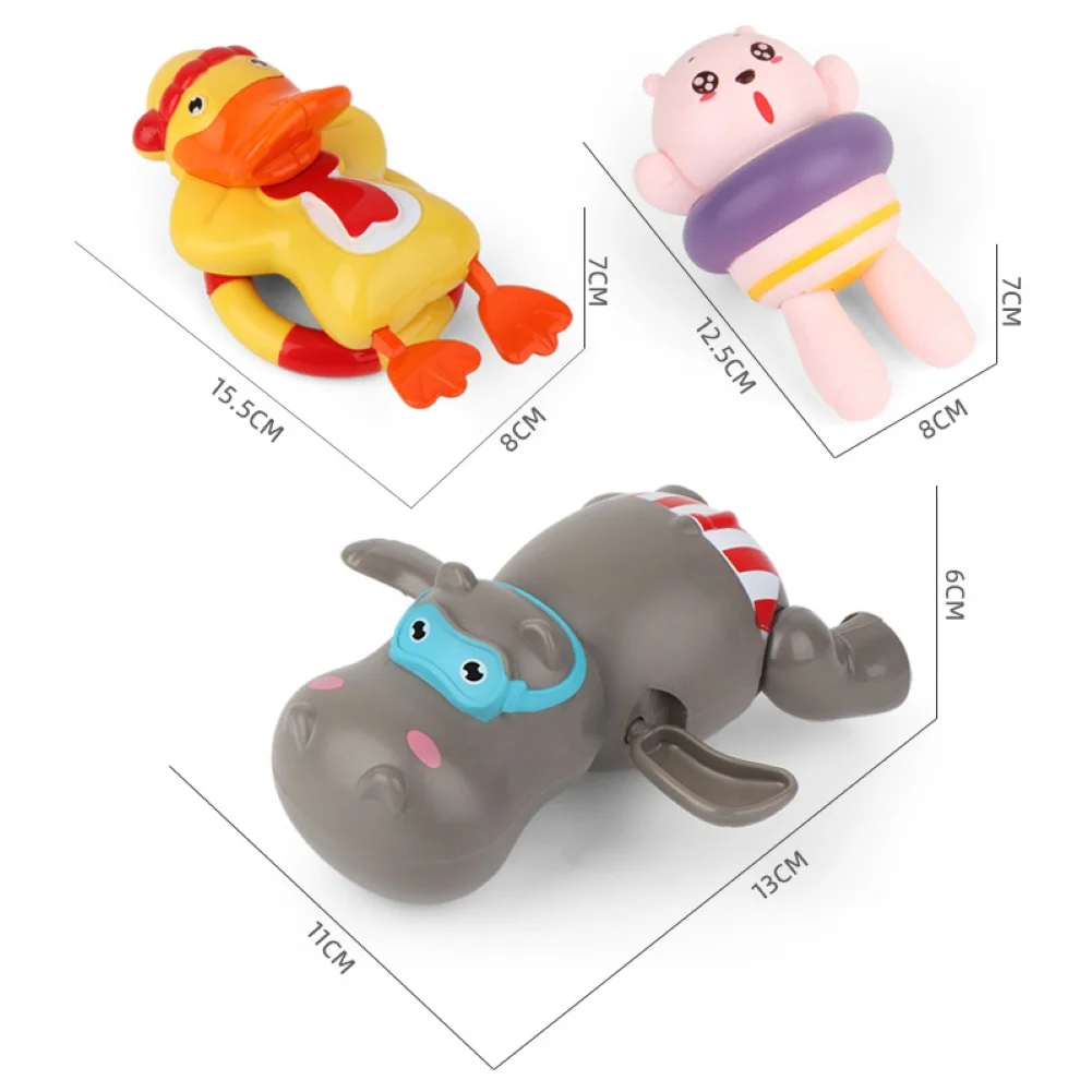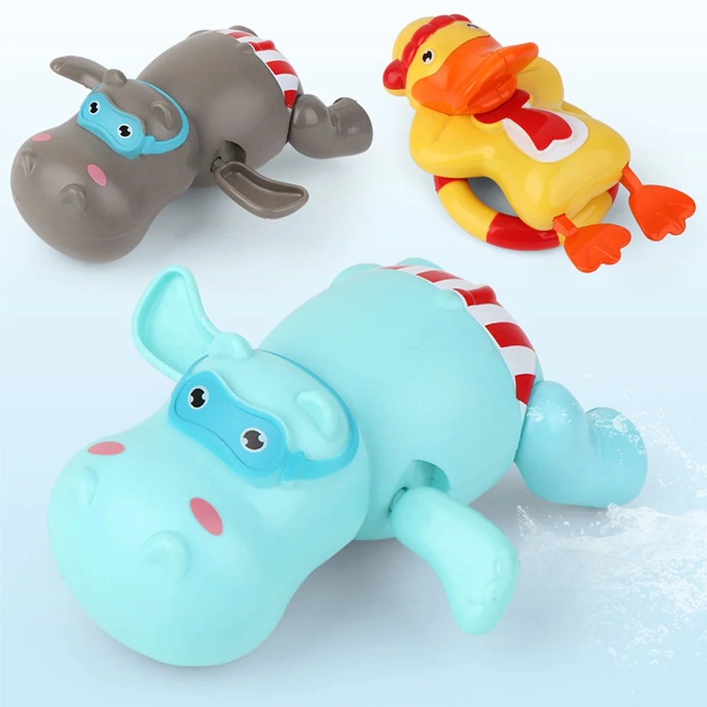 Baby Cute Hippo Bear Duck Wind Up Clockwork Bathroom Water Play Game Bath Toy