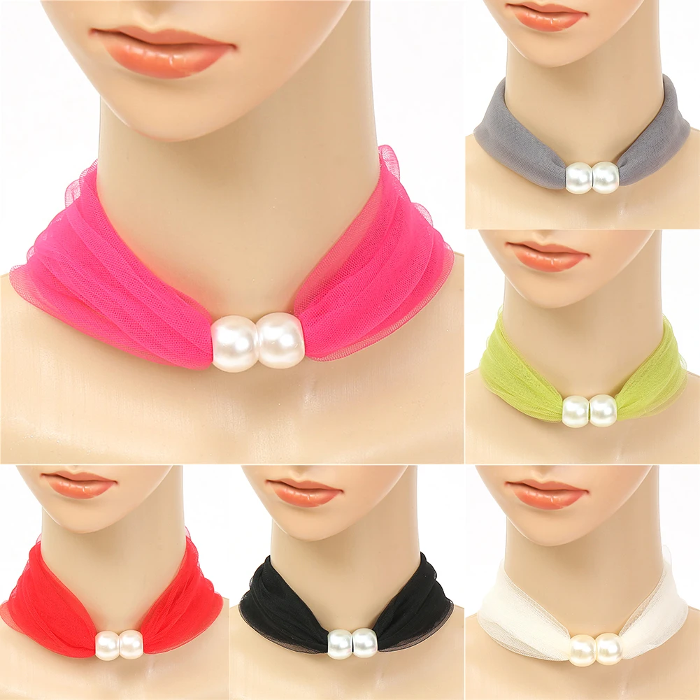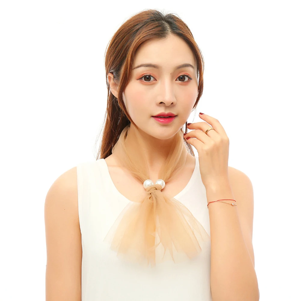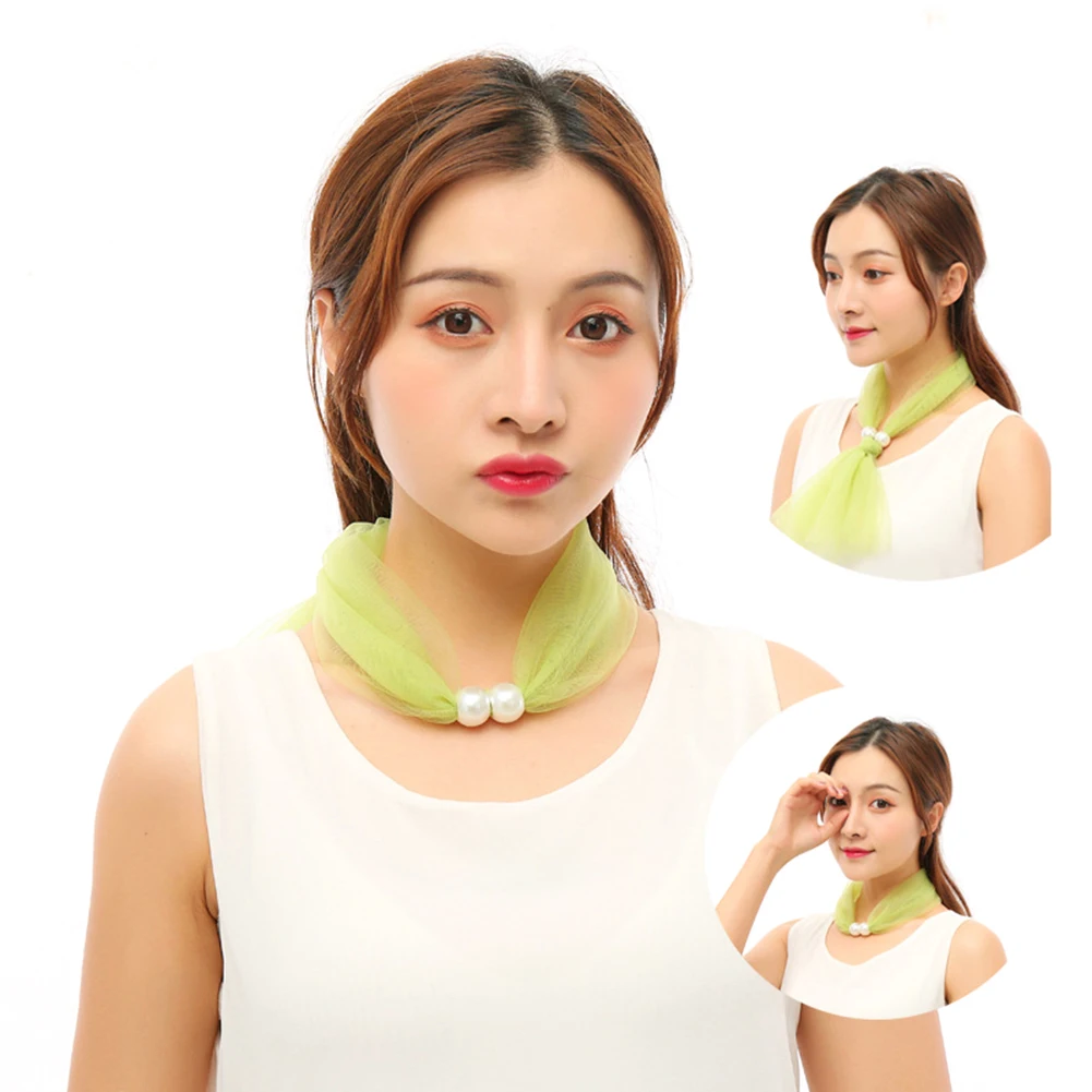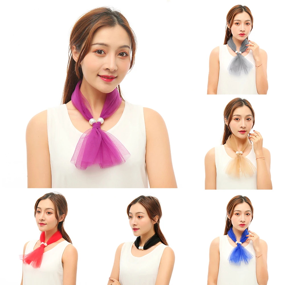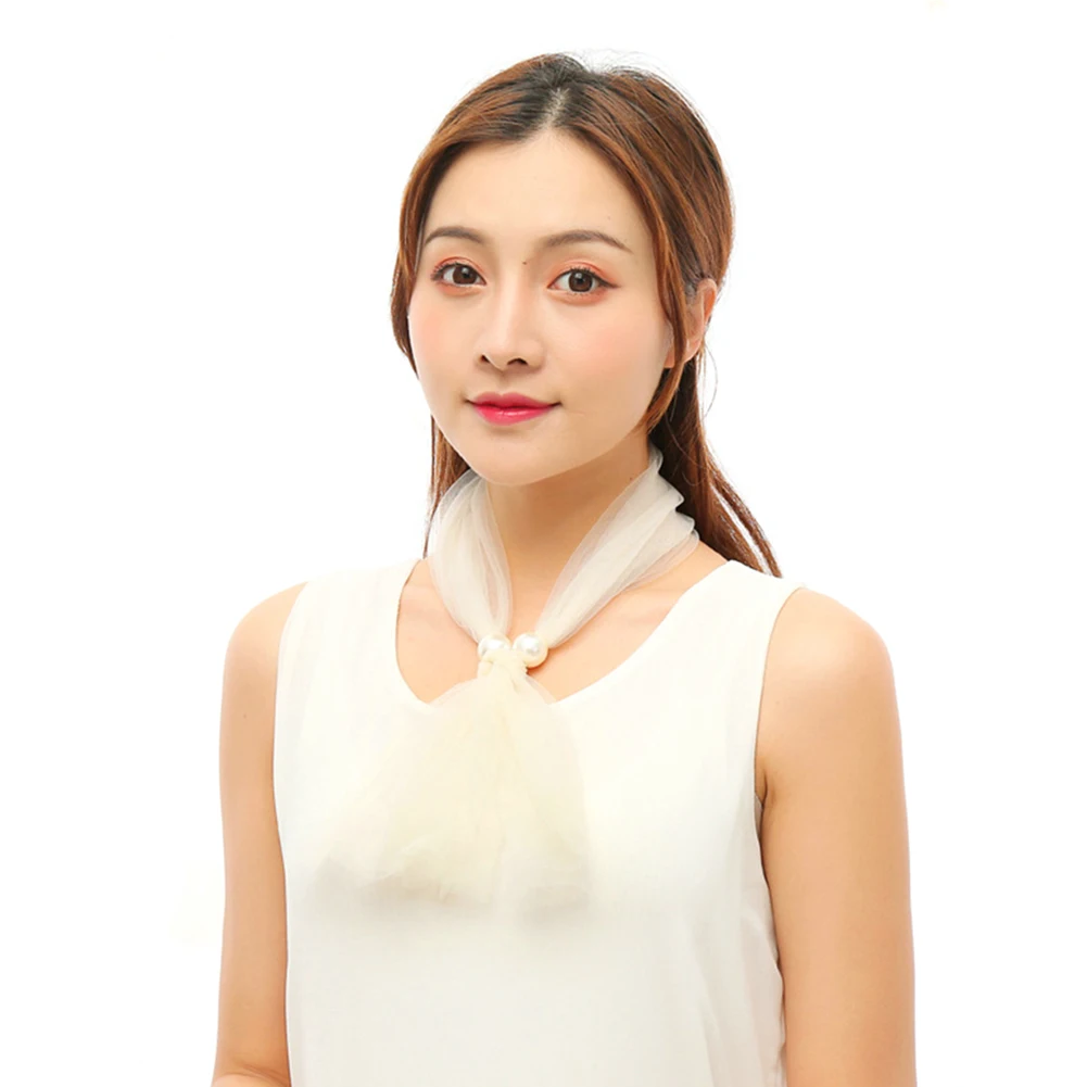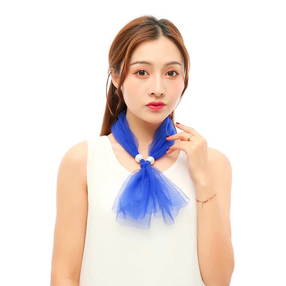 Модный женский шелковый шарф с искусственным жемчугом, повязка на голову, повязка на голову, шейный платок