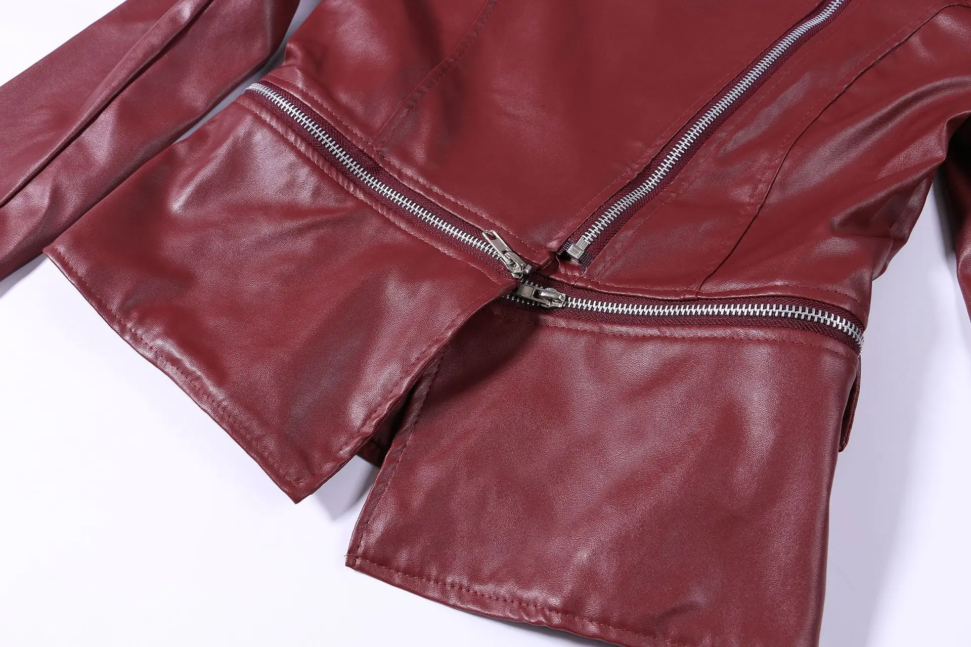 2020 spring Women faux Leather Jacket Gothic moto jacket Zippers Long sleeve Goth Female PU Faux Leather Jackets free shipping