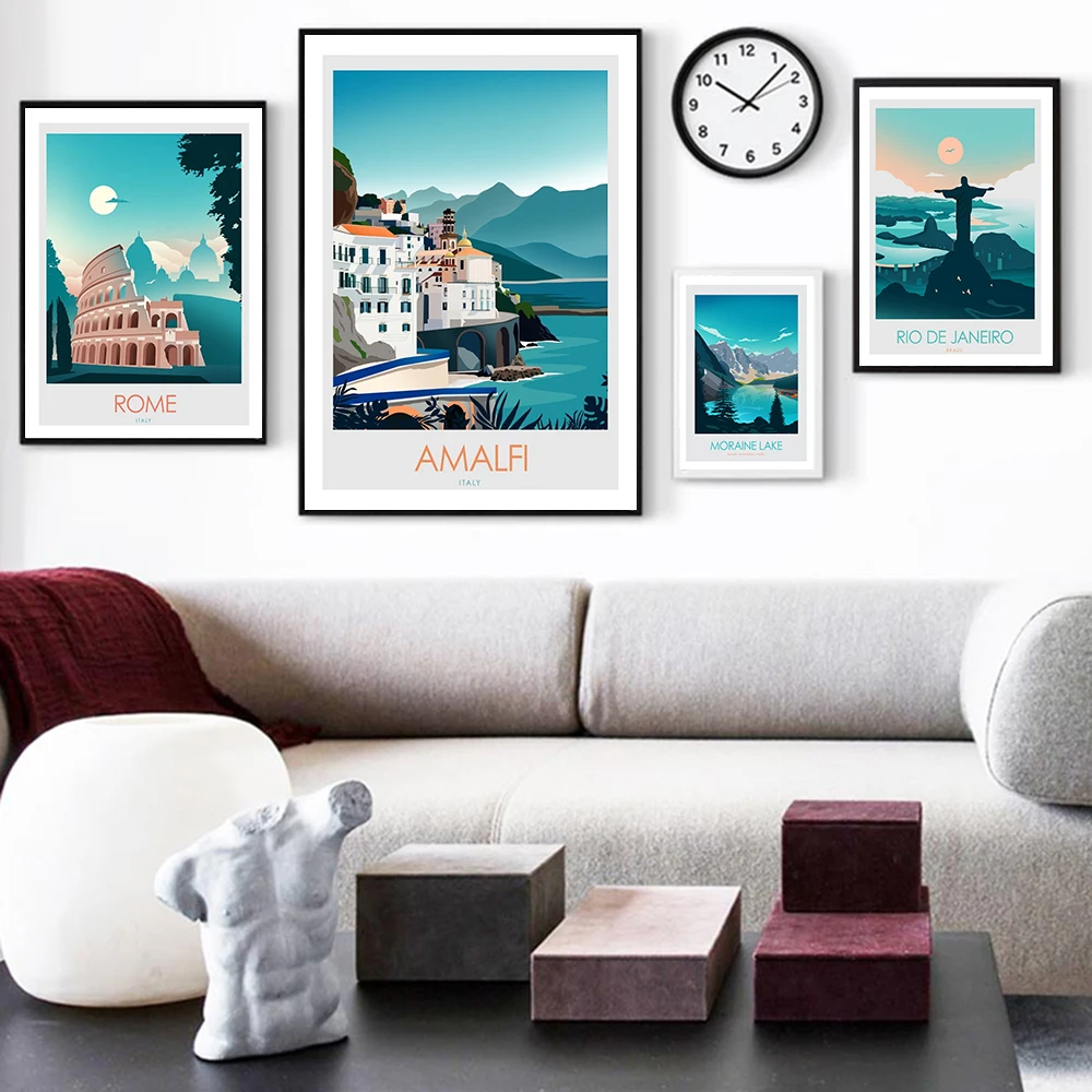 Скандинавская картина маслом пейзаж Рим Амальфи Холст Картина художественный принт Рио плакат Moraine рисунок озера стена гостиная домашний декор