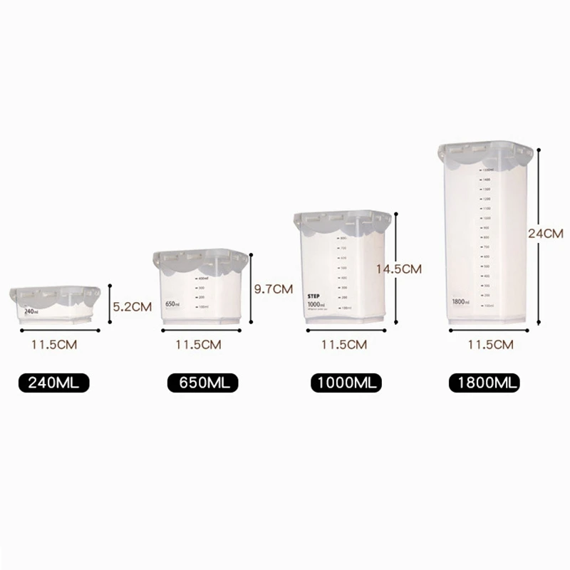 Размеры: 240 мл/11,5x5,2 см; 650 мл/11,5x9,7 см; 1000 мл/11,5x14,5 см; 1800 мл/11.5x24CM