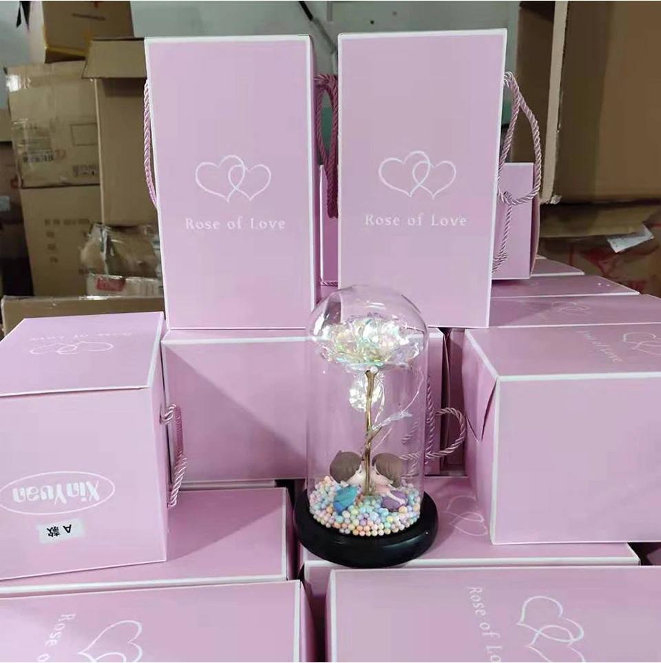 Main Feature: 1.LED Strip light with glass lampshade creative romantic atmosphere for lover; 2.Perfect to any decorative or holiday project, suitable for party, wedding, indoor decoration, etc; 3.Powered by 3*AAA battery(not included),led strip light bright warm white lighting. 4.Made of high copper wire, flexible, waterproof, durable for daily use. 5.LED string is made with a fine bendable copper wire that create any shape you want. Descriptions: Size: Total height 20cm, diameter of glass cover 9cm, diameter of black base 11cm Package weight: 450 g Packing box size: 13.5x13.5X24.5cm Power: 3 * AAA batteries Features: Hand-made full set, customized glass cover products, environmentally friendly roses, smart colorful automatic flash