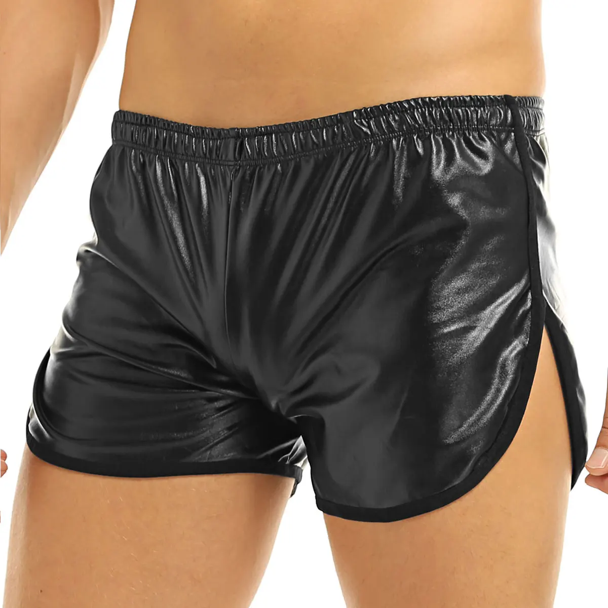 Особенности: Мужские блестящие шорты-боксеры из искусственной кожи, эластичная ткань.