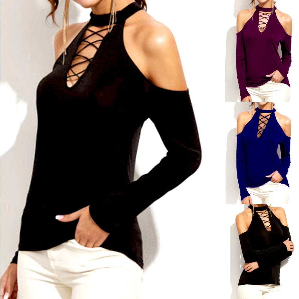 Meihuida весенние сексуальные женские повседневные с длинным рукавом чокер шеи холодное плечо Твердые Мягкие Шелковые волокна свободные топы рубашки уличная одежда
