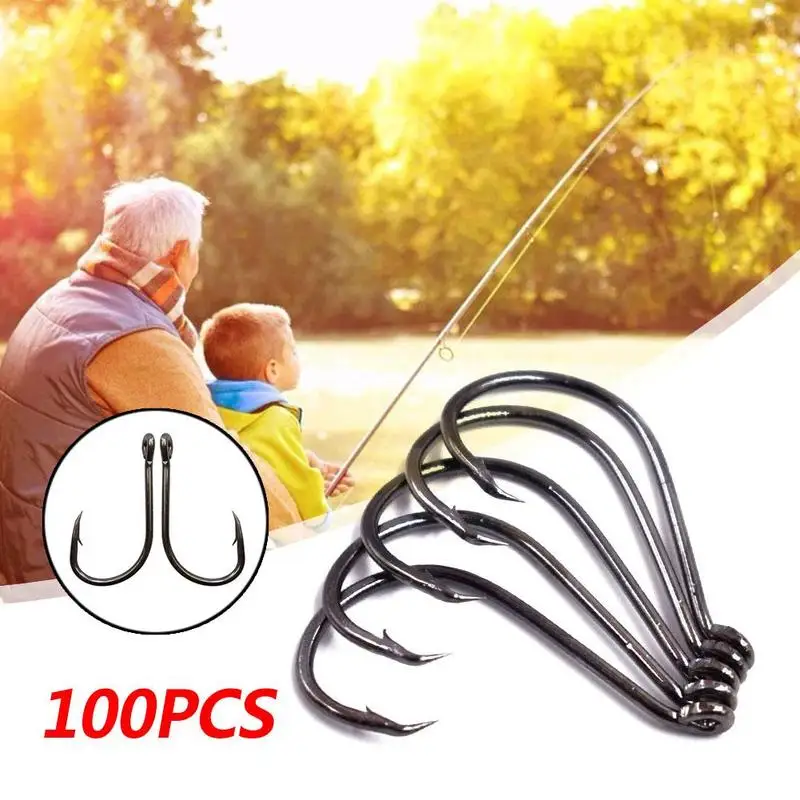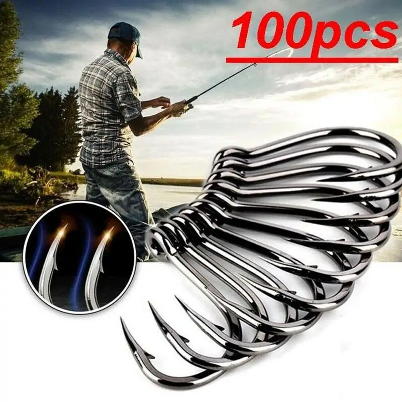 100 штук рыболовных крючков разных размеров от 6 # до 14 #.