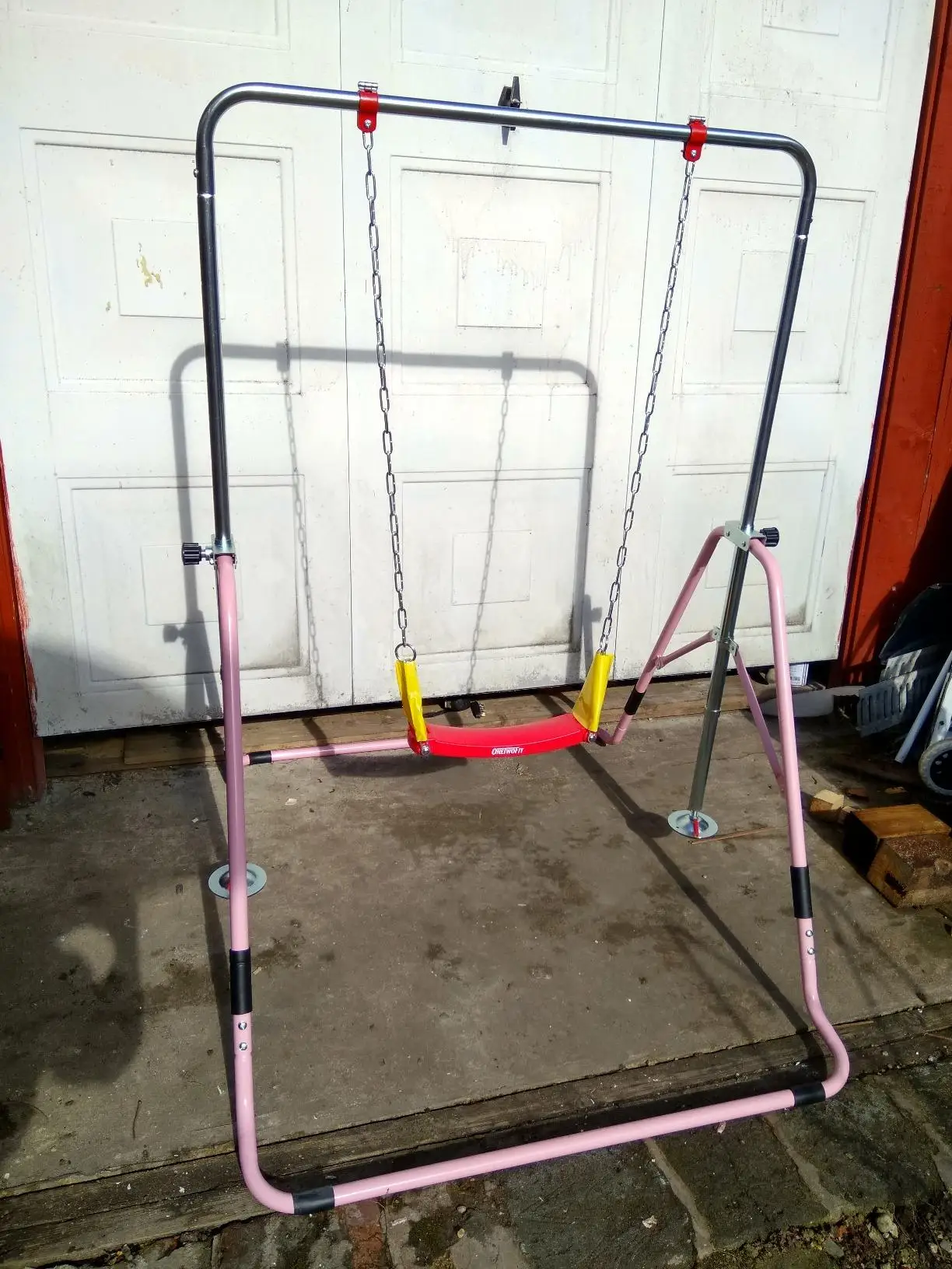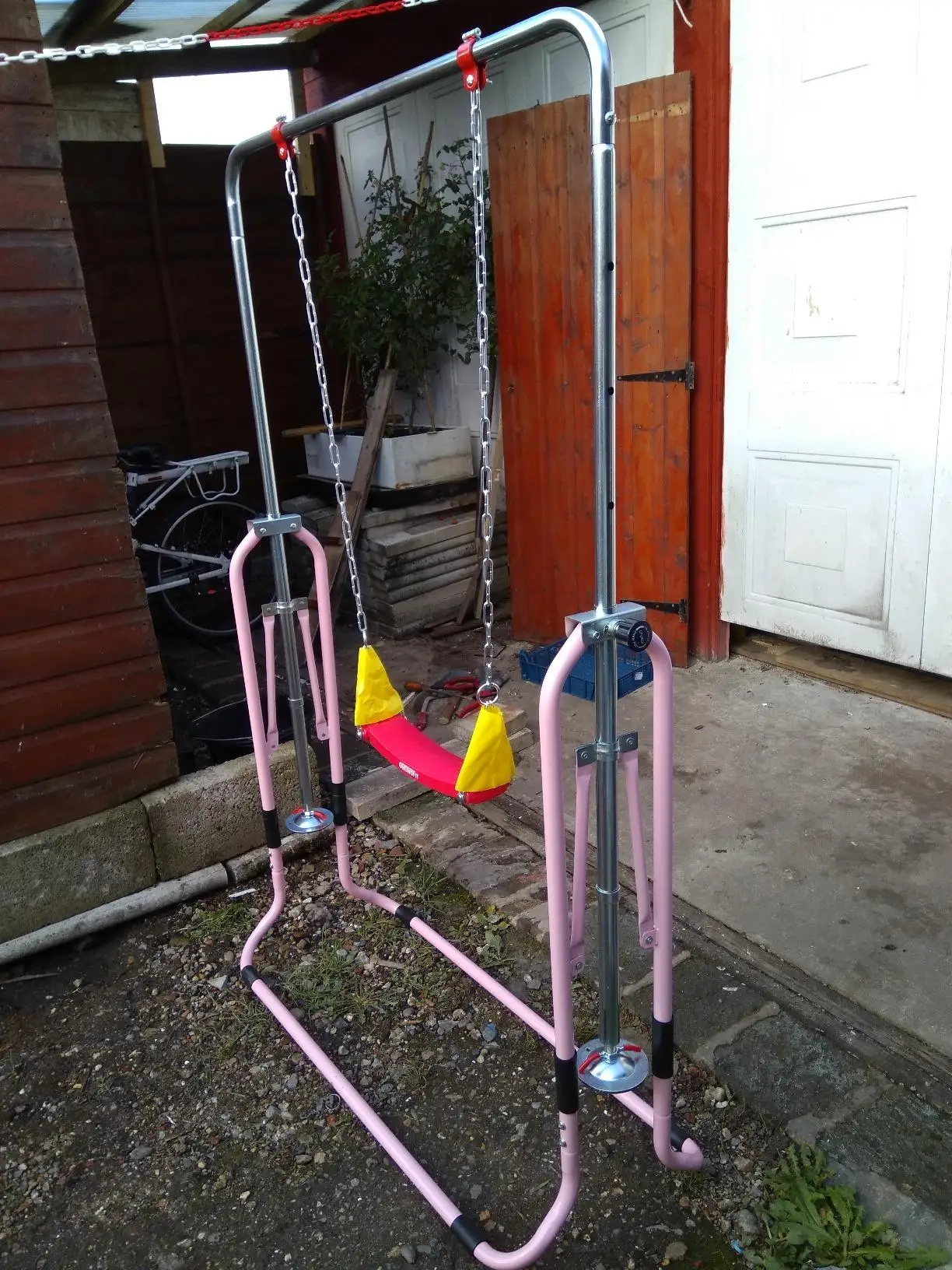 -Применимый пользователь: начинающий гимнаст в возрасте от 3 до 7 лет -Цвет: розовый -Материал: сталь с гладким порошковым покрытием -Размеры (в сборе): 57,87 "x 42,13" x 51,97 "/147*107*132 см -Рост: 35,8 "/41"/46 "/52"(91 см/104 см/117 см/132 см) -Предел веса: 110 фунтов/50 кг -Вес посылка: 22 фунта/10 кг -Вес изделия: 19,36 фунтов/8,8 кг