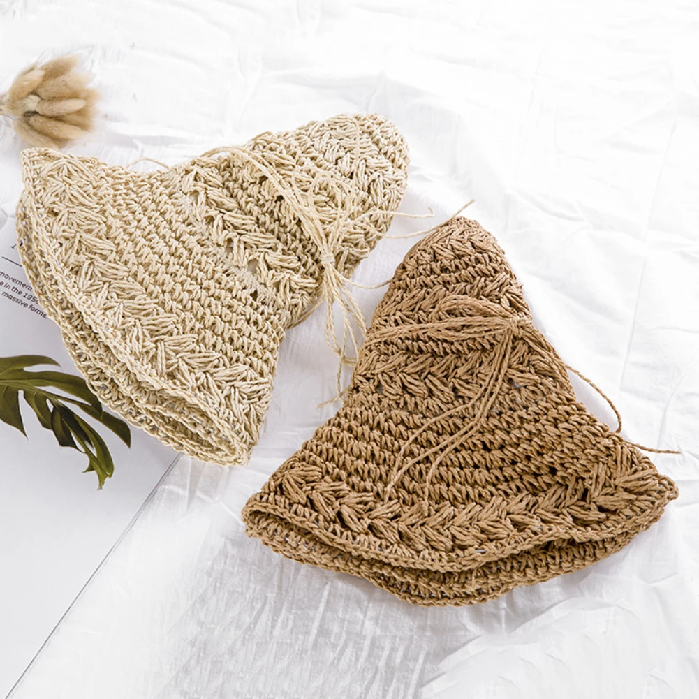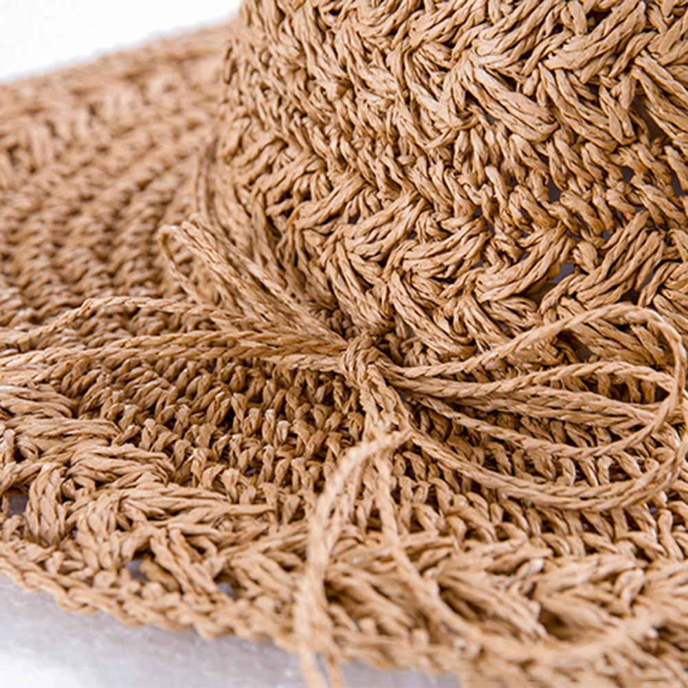 Женская Складная вязаная крючком соломенная шляпа с большими полями Солнцезащитная Шляпа Пляжная Шляпа
