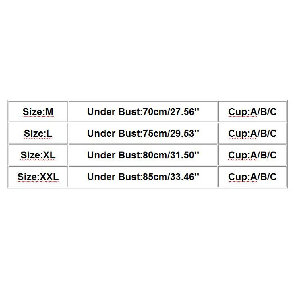 Размеры Обхват под грудью Чашка М 70 см/27,56'' A/B/C L 75 см/29,53'' A/B/C XL 80 см/31,50'' A/B/C XXL 85 см/33,46'' A/B/C