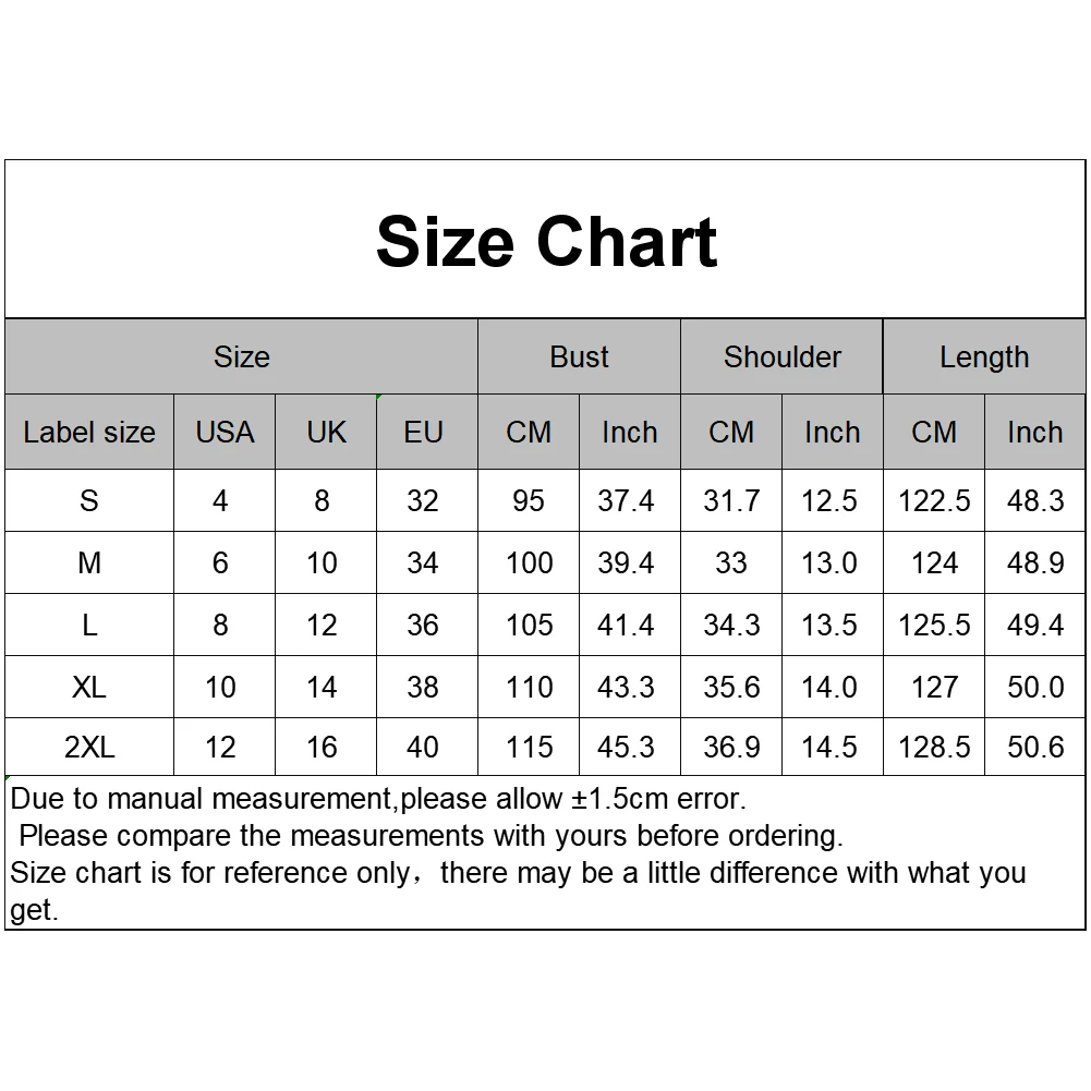 [Наш Размер S] Обхват груди: 95 см/37,4 ", ширина плеч: 31,7 см/12,5", Длина: 122,5 см/48,2 "(прибл.)