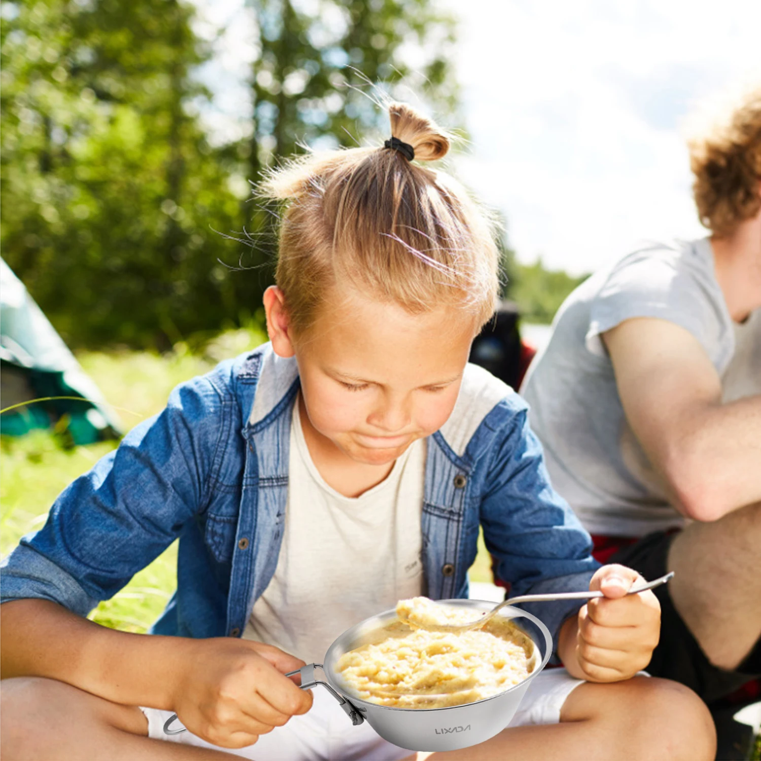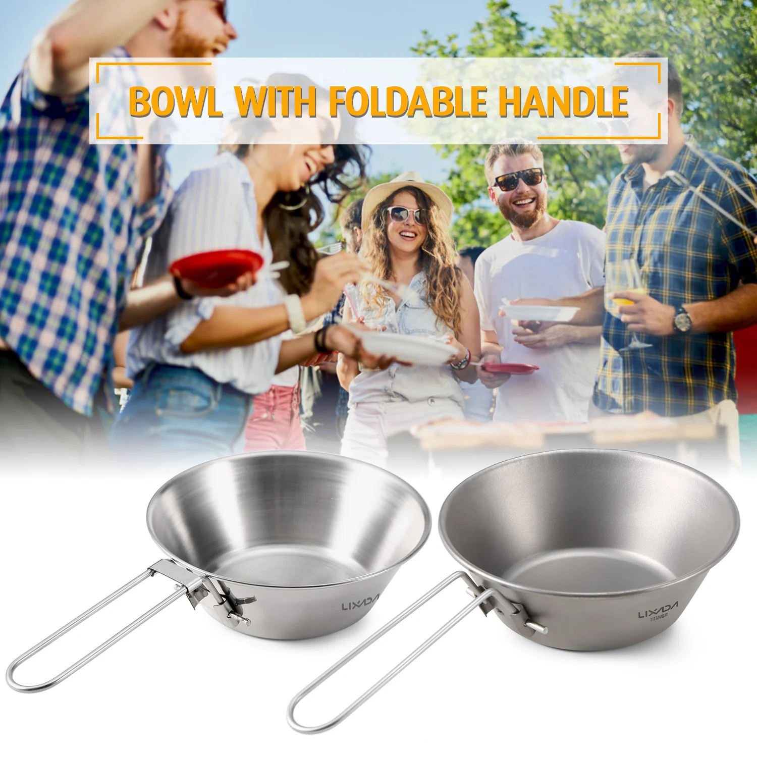 Титановая чаша со складной ручкой, очень удобна как для дома, так и для использования на открытом воздухе.