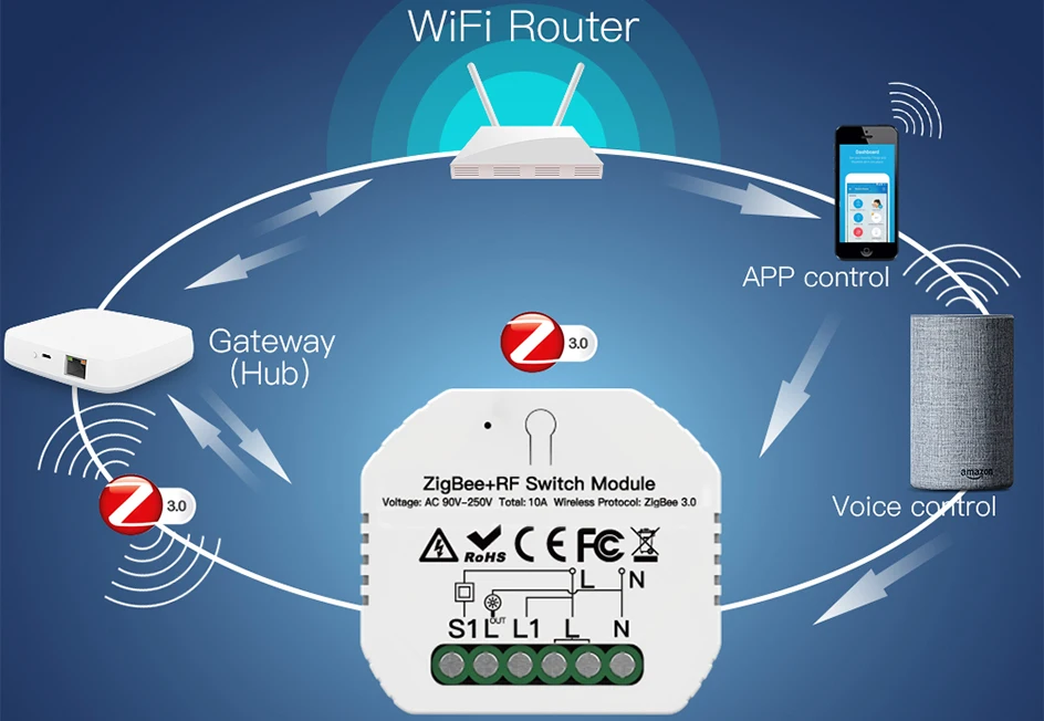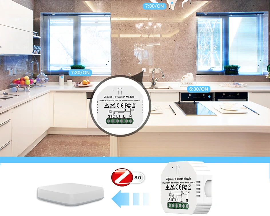 Протокол ZigBee 3,0 с мини-дизайном, подходит для ЕС/настенный переключатель стандарта Великобритании, и легко спрятать его в вашу скрытую стену, чтобы сделать его умным, предоставляя вашим устройствам максимальную мощность включения/выключения, умный макияж и конвертировать большинство любых совместимых продуктов в умные; Традиционный переключатель и этот умный модуль могут работать независимо без помех.