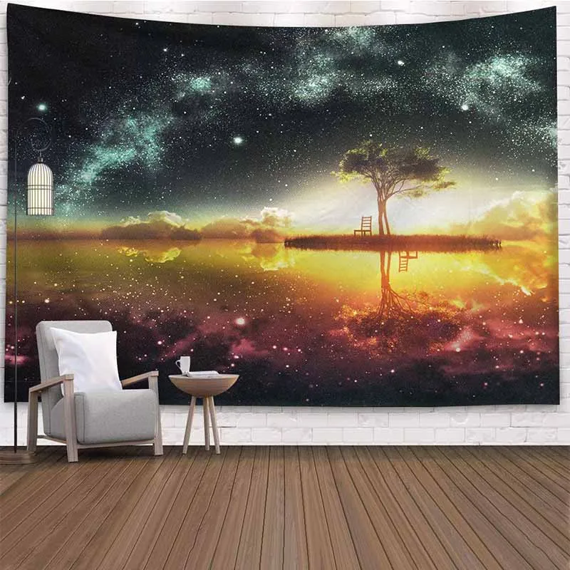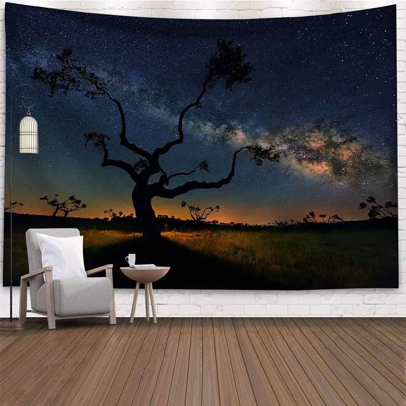 Гобелен с природным пейзажем, звездным лесным деревом, настенный гобелен в стиле хиппи, настенный гобелен, домашний декор, психоделические настенные ковры