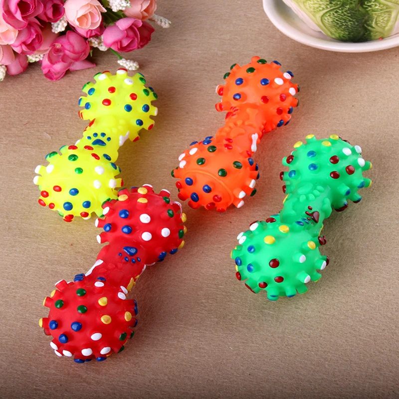 1 шт., игрушка для питомца, собаки, кошки, щенка, в горошек, пищащая игрушка, резиновая гантель, Жевательная забавная игрушка