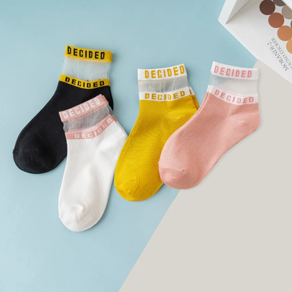 2 пары женских хлопковых дышащих сетчатых носков с абсорбирующей надписью