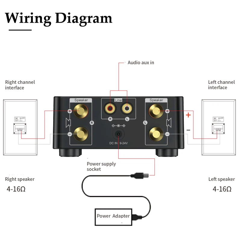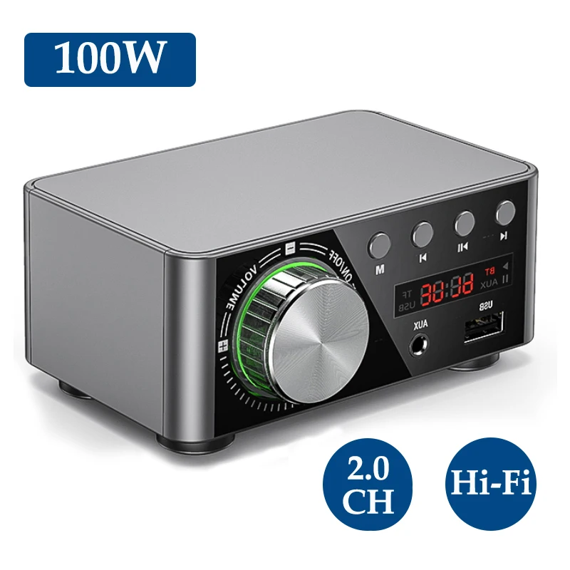 100 Вт Мощность --- BT стерео усилитель приемник обеспечивает 50 Вт + 50 Вт двухканальный стерео выход, сопротивление 4-16 Ом. С непревзойденным превосходством звука и позволяет наслаждаться высококачественным усиленным аудио.