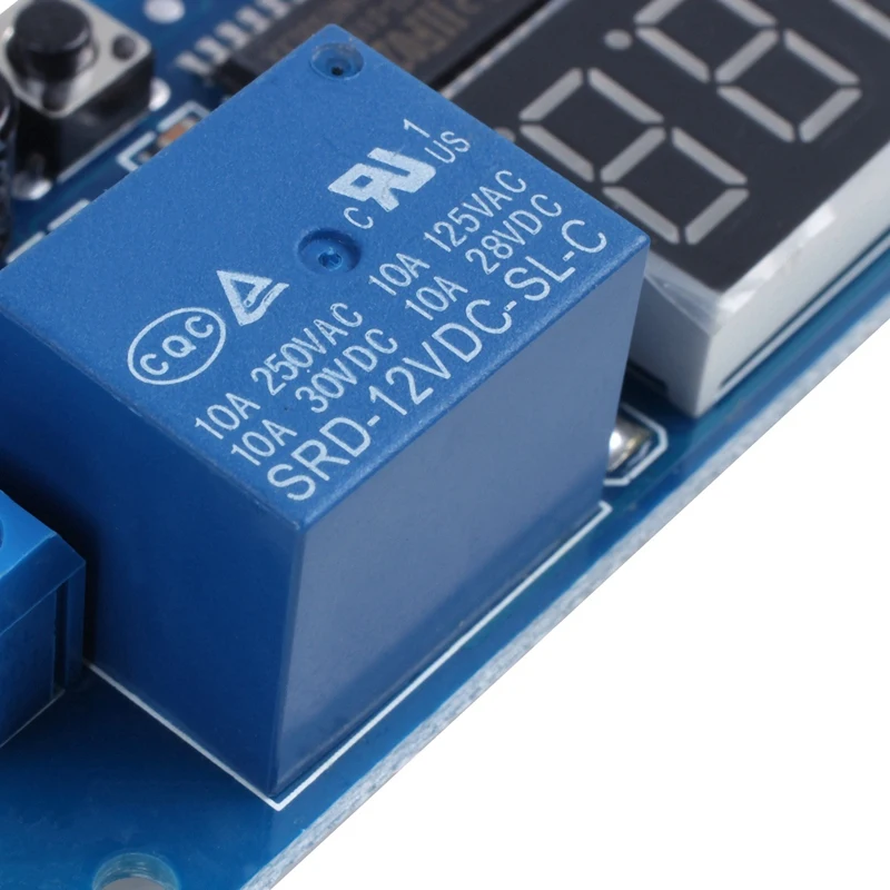 4. Светодиодный цифровой дисплей, нормально открывающийся триггер задержки 12 В релейный модуль, срабатывающий при помощи внешнего сигнала.