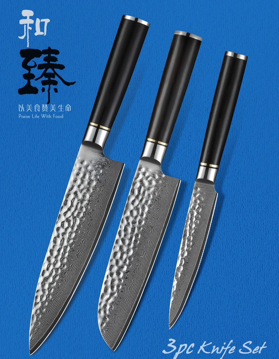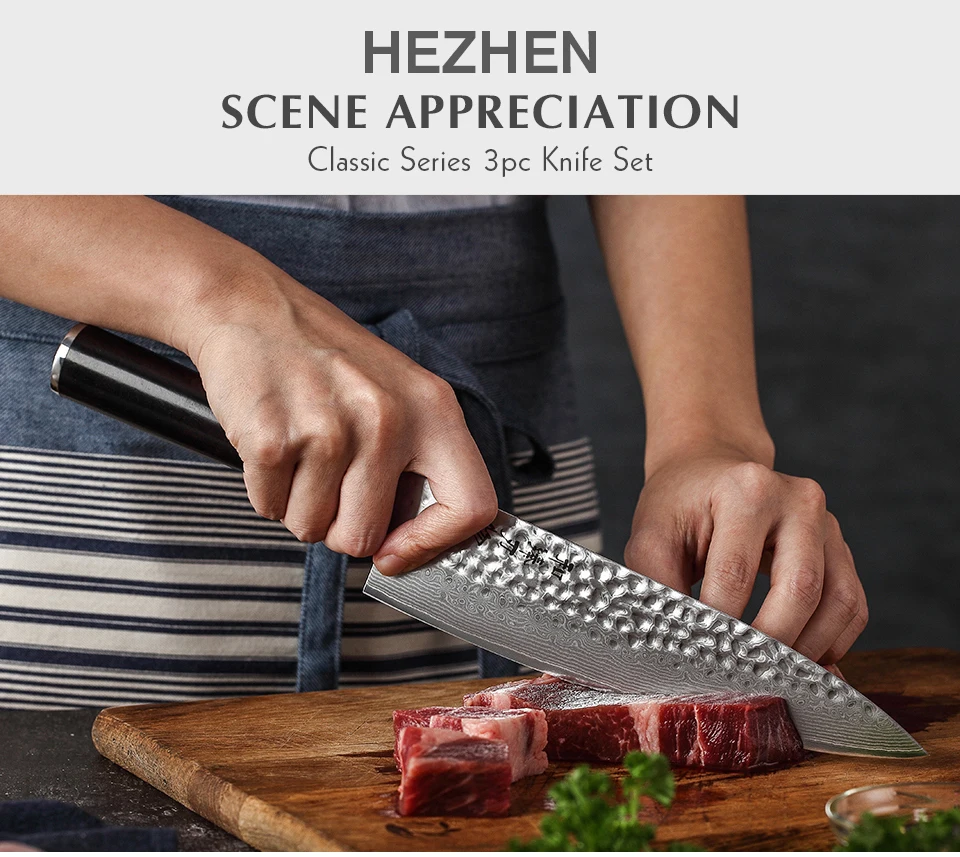 HEZHEN ClassicКухонный нож из дамасской стали серии 3 шт.