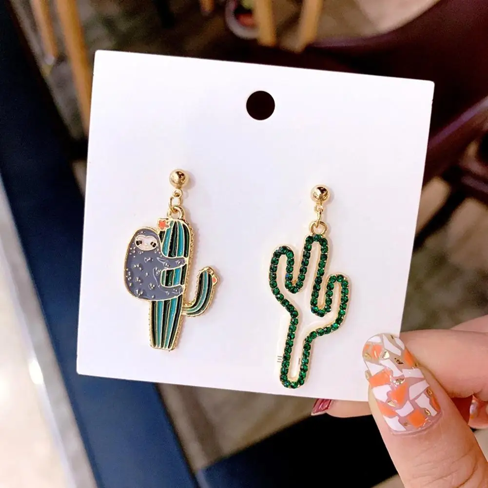 Милые женские полые кактус Асимметричная Подвеска Сплав Серьги-гвоздики ювелирные изделия