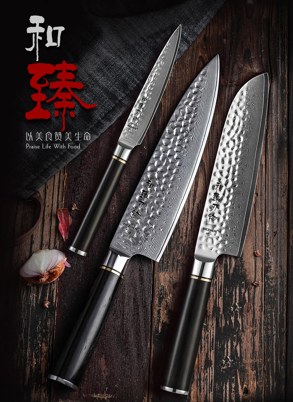 Hezhen классическийКухонный нож из дамасской стали серии 3 шт.