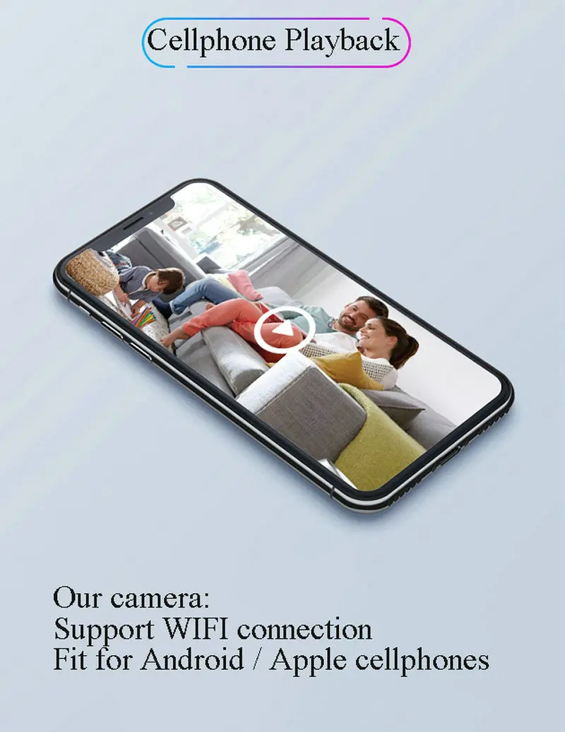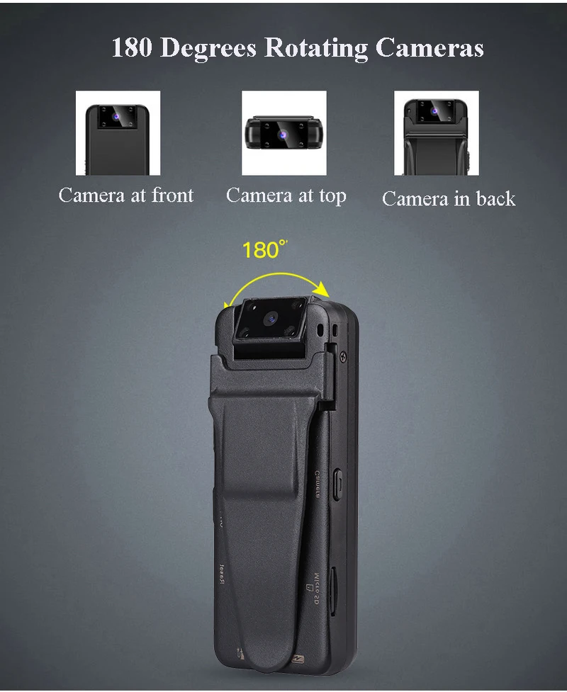 1. Корпус изготовлен из пластика и против падения 2. Один ключ для начала записи 3. 4 шт. 940 Красный Инфракрасный свет 4. Запись и зарядка одновременно. 5. Циклическая запись 6. Обнаружение движения, HD 1080P, WIFI камера 7. Автомобильный видеорегистратор, спортивный DV, инструмент для правоохранительных органов 8. Поддержка tf-карты от 8 Гб до 128 ГБ 9. 180 градусов вращающиеся головки камеры и супер широкий угол 120 градусов 10. Синхронизация времени системы 11. Магнитный съемник для жестких бирок для электронного отслеживания товара, адсорбции 12. Долгое время записи после полной зарядки 13. Поддержка wifi, роутера, горячих точек, дистанционного управления и подключения к мобильному телефону напрямую 14. Длительный срок службы батареи: 7 часов непрерывной записи при выключении WIFI. Около 5 часов при включении WIFI 15. Защита паролем 16. Умный мобильный телефон сигнализация. 17. SMS будильник 18. Невидимая и бесшумная запись 19. Программное обеспечение для воспроизведения: QQPlayer/Kmplayer/VLCmedia 20. Функции: опора для сотового телефона/компьютера/планшета/дистанционного управления/монитора/записи/скриншот 21. Другие вспомогательные функции: Инфракрасный светильник/светодиодный индикатор/Задний зажим 22. Цвет: черный