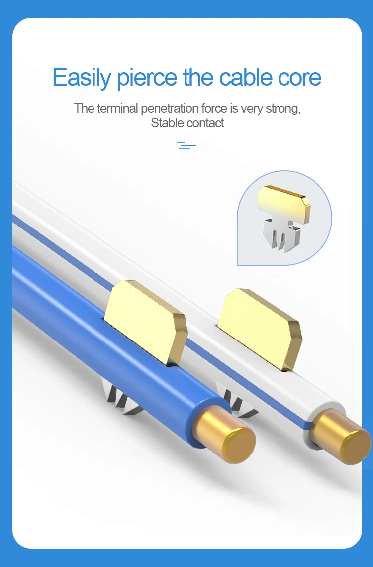 Толщина и ширина клеммы усилены. Легко проткните сердечник кабеля. Расстояние между клеммой и сердечником точно выровнено и находится в хорошем положении.