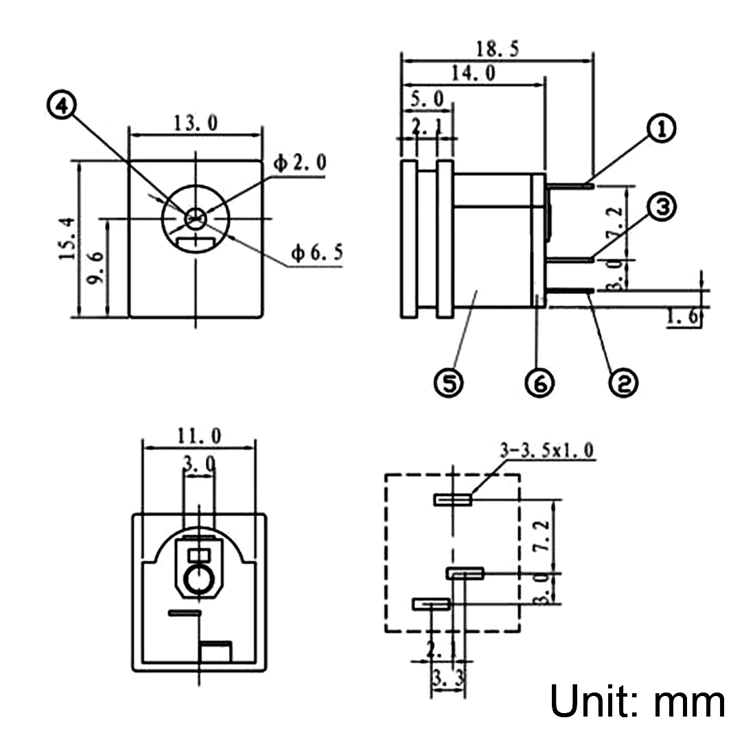 Модель:DC-015Тип: гнездо постоянного тока 5,5 мм x 2,1 ммНомер контакта: 3Ширина штифта: 3-3,5 ммДиаметр гнезда: 6,5 ммРазмеры: 18,5x13x15,4 мм (Д * Ш * В)Материал: медь, металл, пластикНоминальная нагрузка: 0,5 А постоянного тока 30 вКомплектация:10 шт. x разъем питания постоянного тока