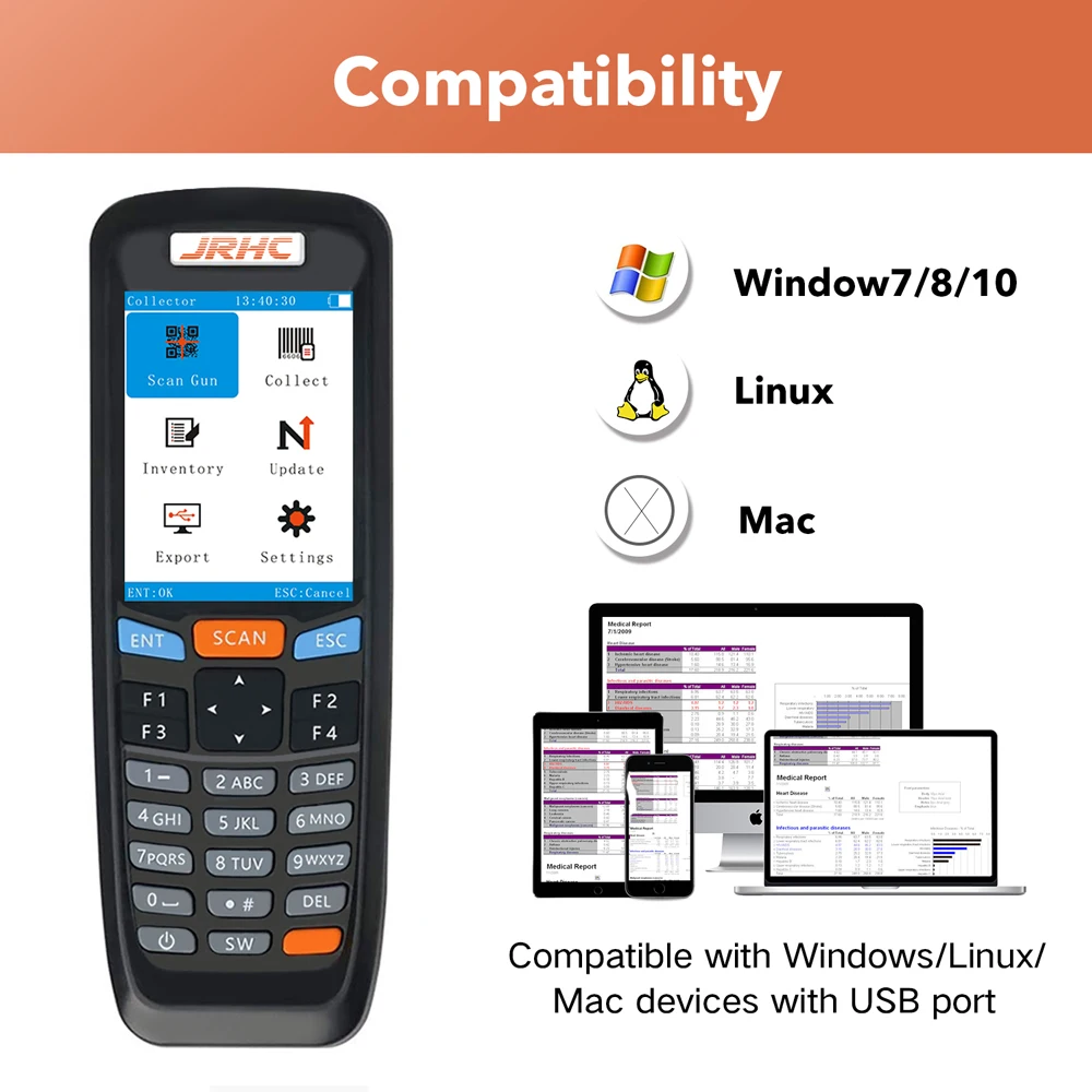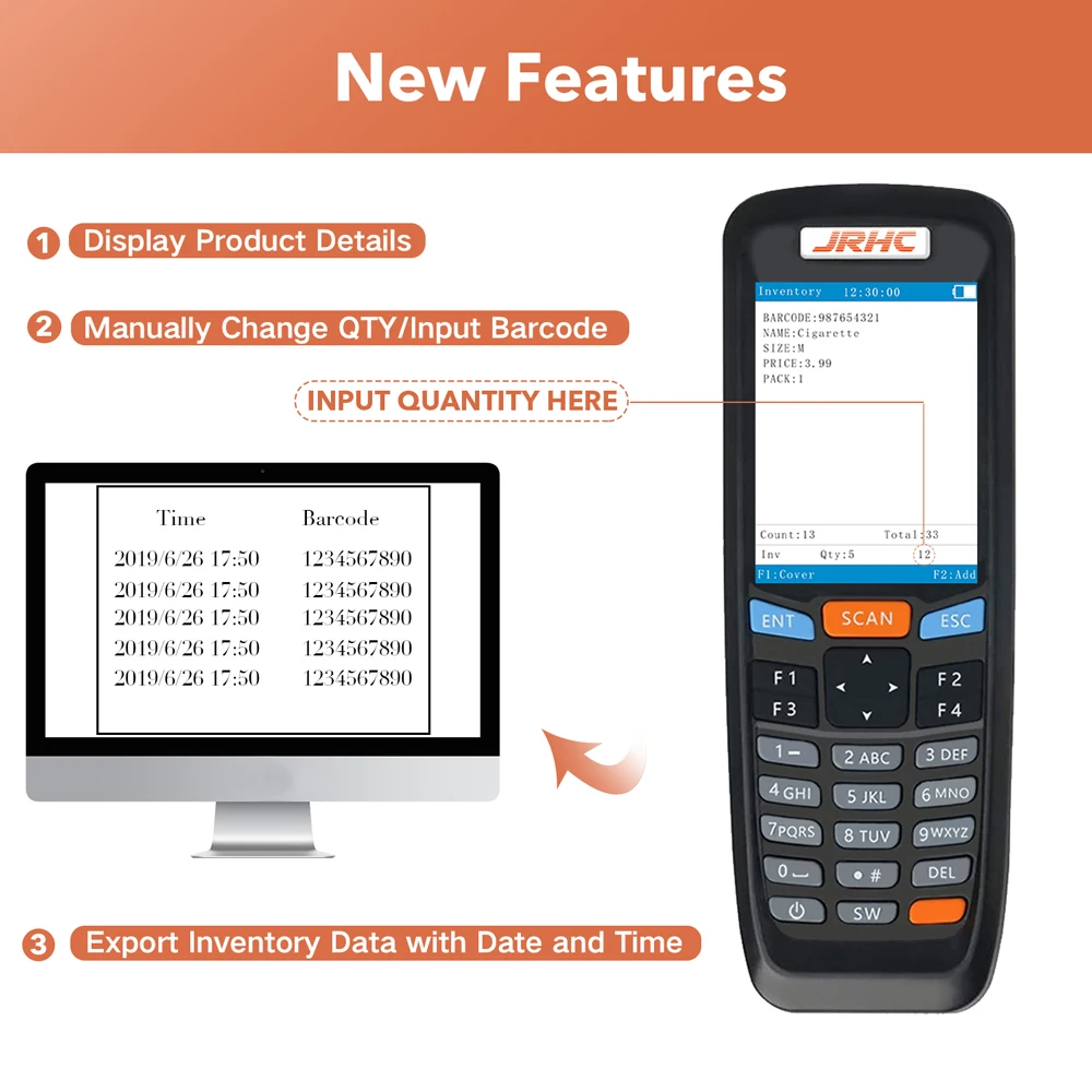 【Многофункциональность 】 это сборщик штрих-кодов и счетчик инвентаризации в сочетании с проводным сканером с беспроводным сканером.