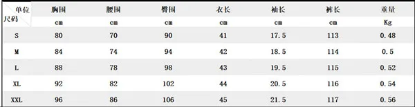 Size Bust Waist Hips Tops Sleeve Pants Weight