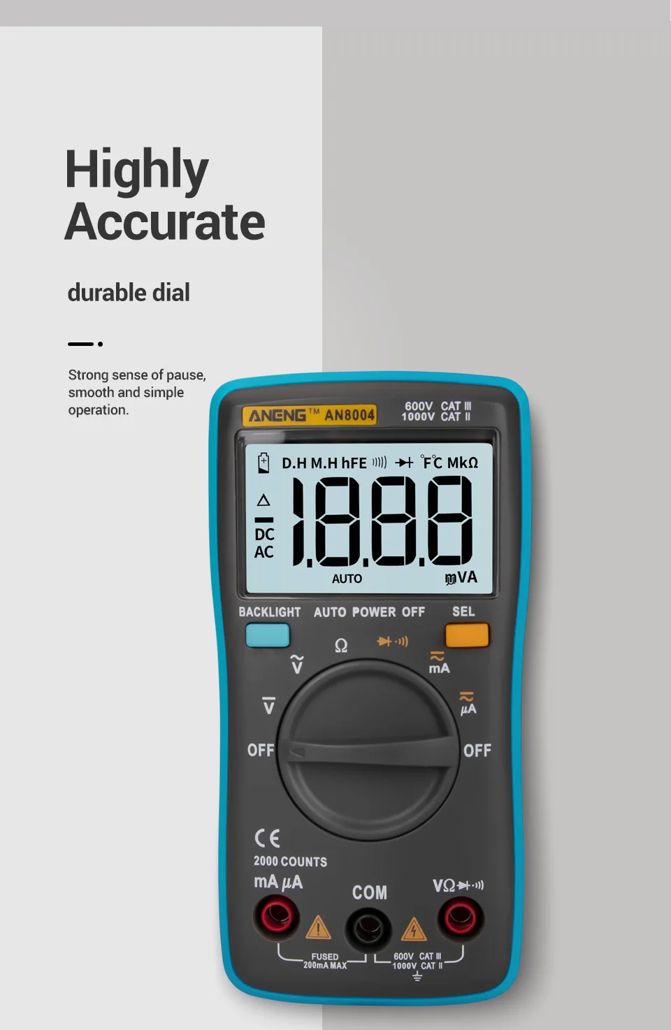 Портативный ЖК-цифровой мультиметр AN8004, 1999 расчетов, амперметр с подсветкой переменного/постоянного тока, вольтметр, Омметр, тестер