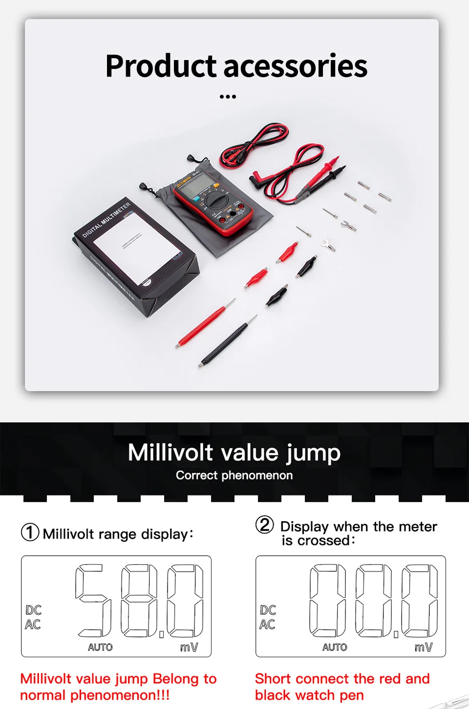 Сопротивление: 400Ω/4K/40K/400K/4M(± 0.8% + 4),40MΩ(± 2.0% + 4)