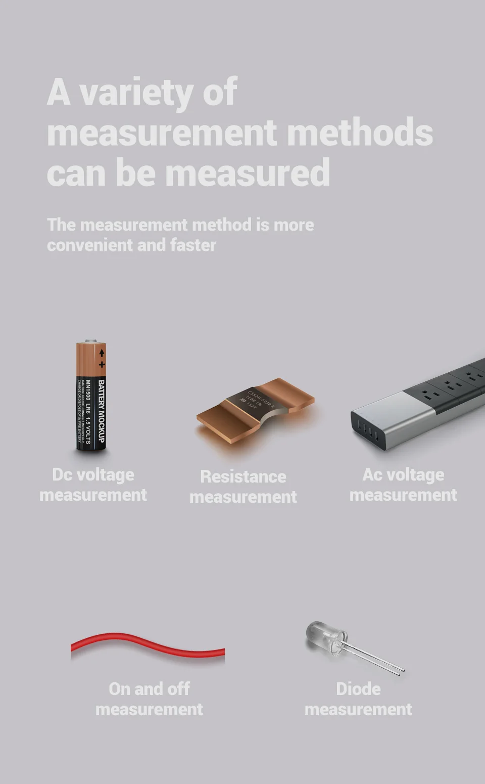 Основные измерения: переменное/постоянное напряжение, переменный/постоянный ток, сопротивление, емкость, проверка диодов и целостности цепи, частота и рабочий цикл.
