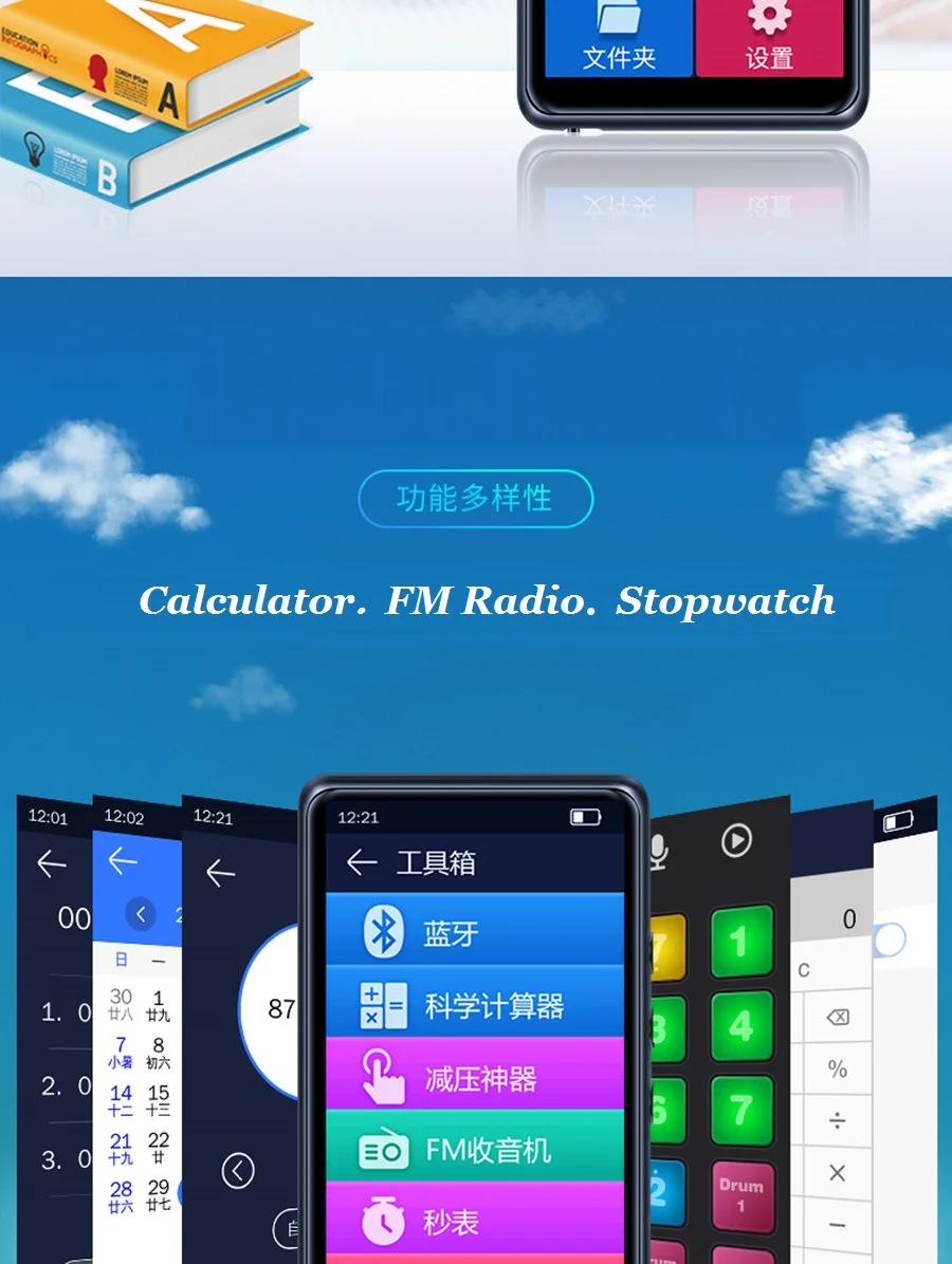 Радио: поддержка Формат электронной книги: Формат TXT (поддержкаКитайский/английскийVВоспроизведение oice) Просмотр изображений: Поддержка изображений JPG, JPEG, BMP, GIF, PNG и т. Д.Формат музыки: MP3/WMA/OGG/WAV/APE/FLAC/AAC и т. Д.
