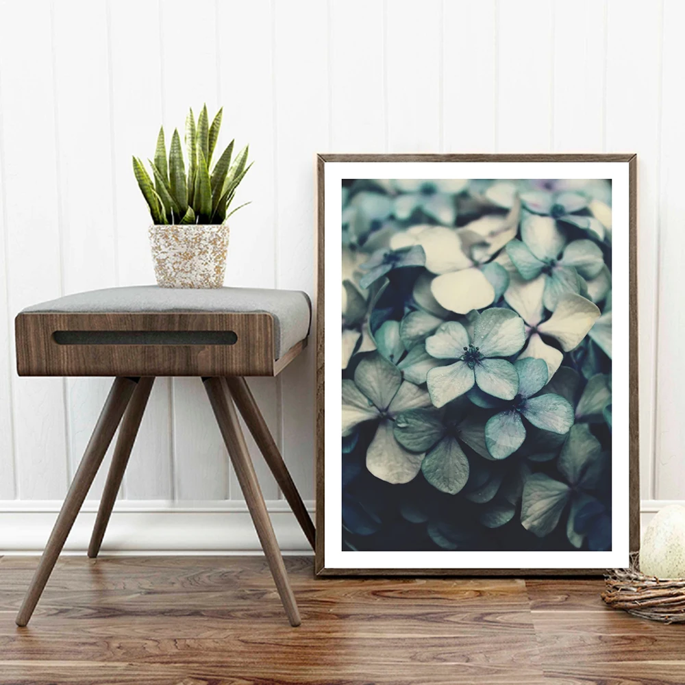 Синие цветы, Современная Картина на холсте, настенная живопись, принт зеленого растения, постер, картина, Декор, картина, гостиная, украшение для дома