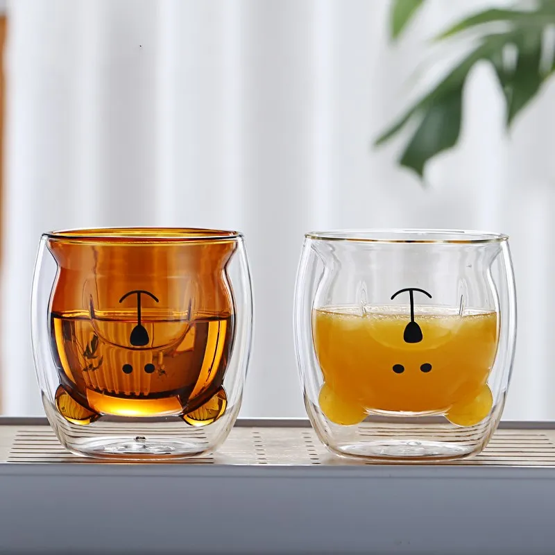 Стеклянные кружки, двухслойная стеклянная кружка, медведь, кошка, собака, животное, двухслойная стеклянная кружка, кофейная чашка, Рождественская кружка, милый чай, молочная чашка, рождественский подарок