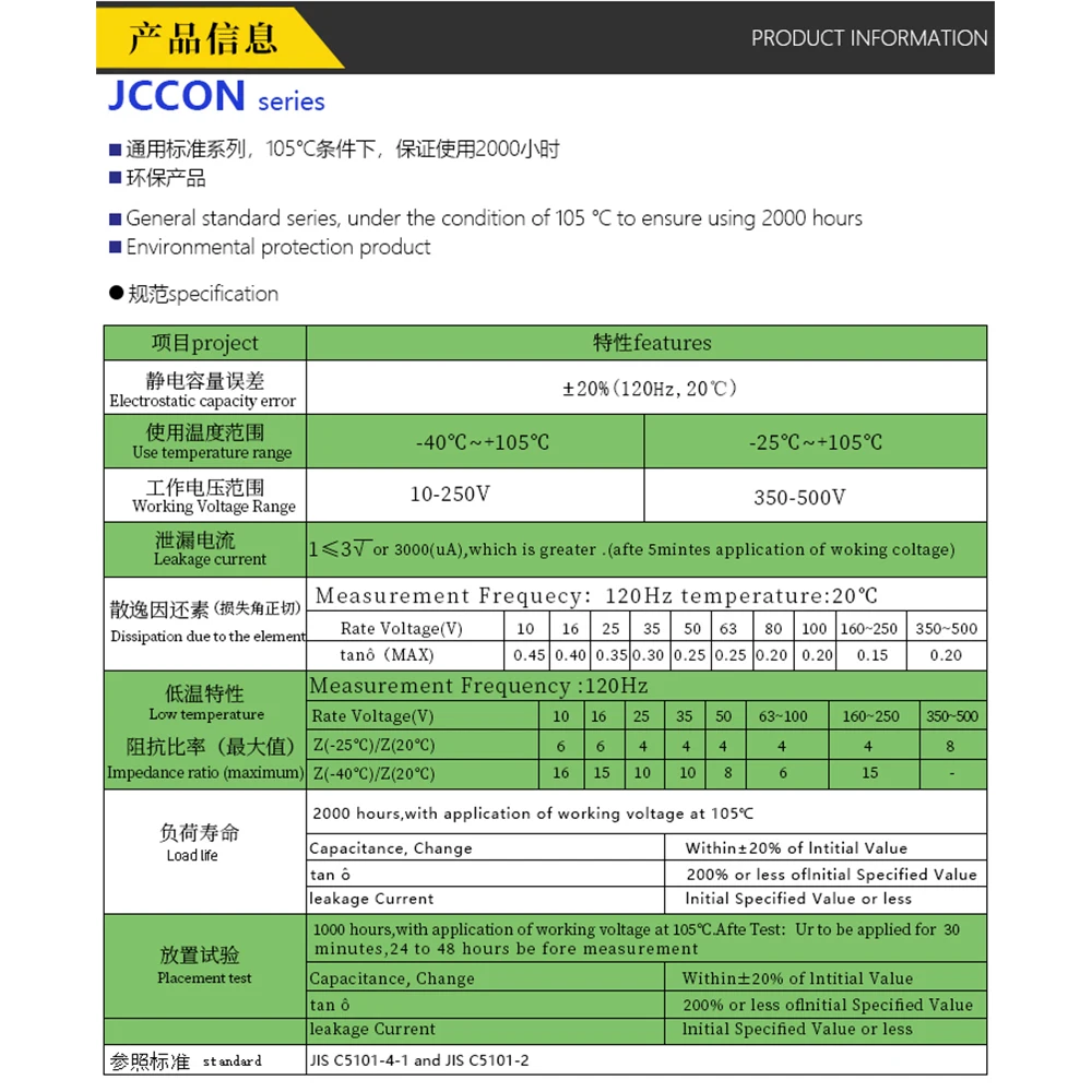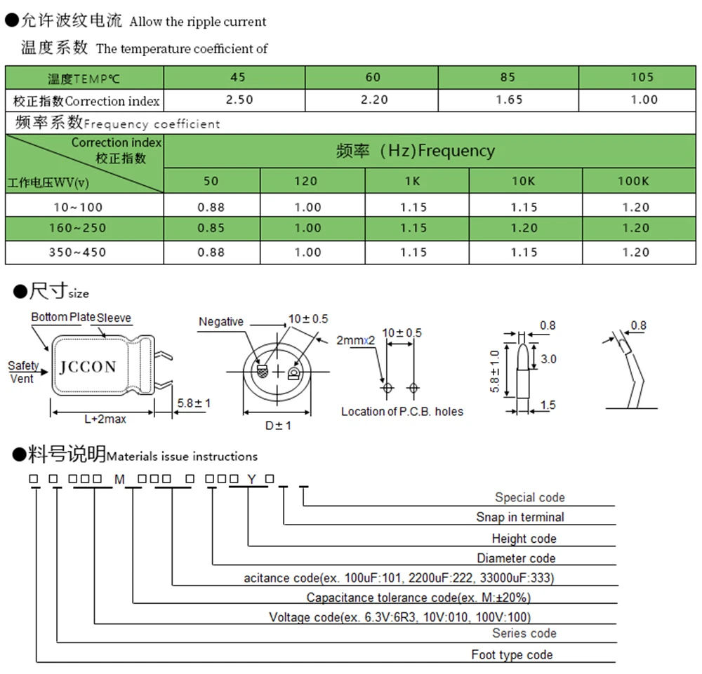 ● Бренд: JCCON ● Серия: Рог ● Спецификация: 1000 мкФ 400 В ● Размер: 35x60 мм ● Шаг: 10 мм ● Термостойкость: 105 ℃