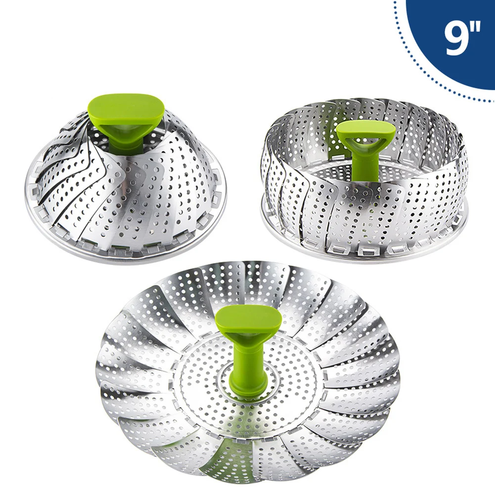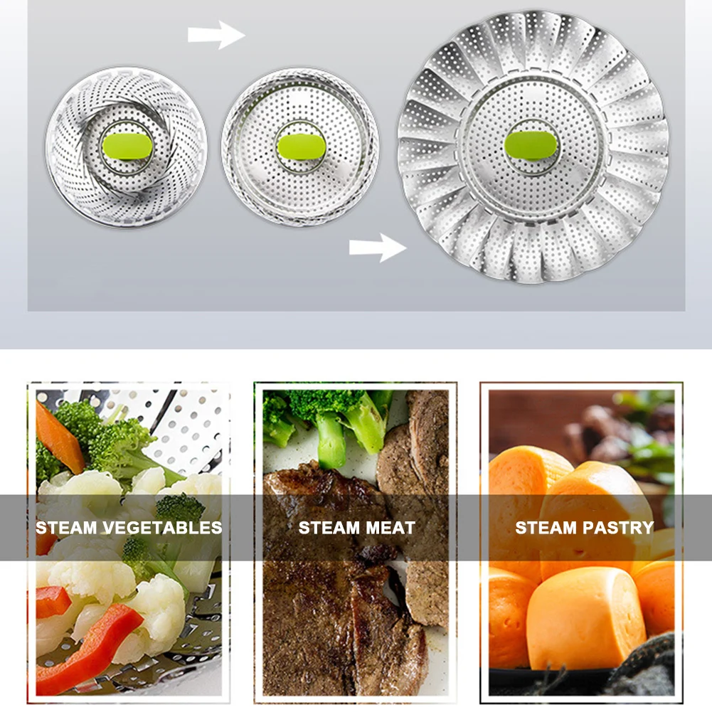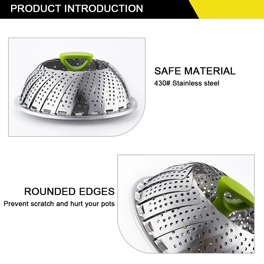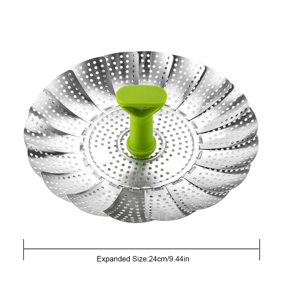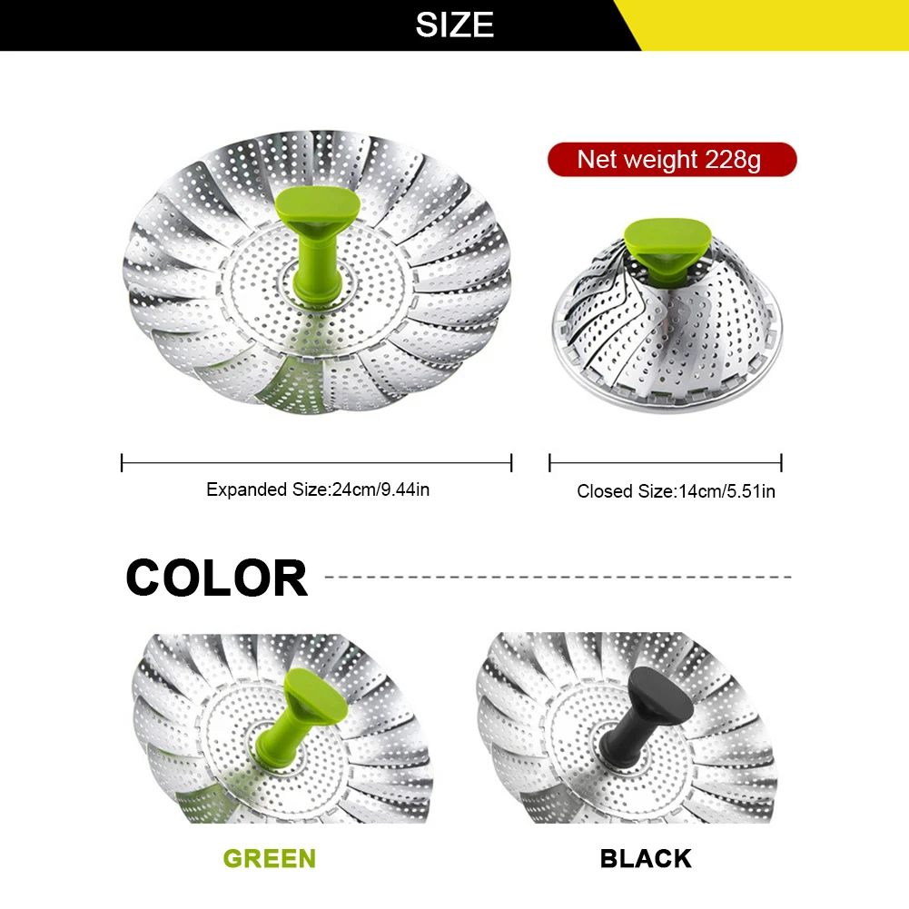 * 4. Диаметр корзины достигает 9,4 "после расширения для того, чтобы держать большинство блюда и паровые овощи, морепродукты, яйца, подходит для мясных продуктов, десертов, детское питание и многое другое.